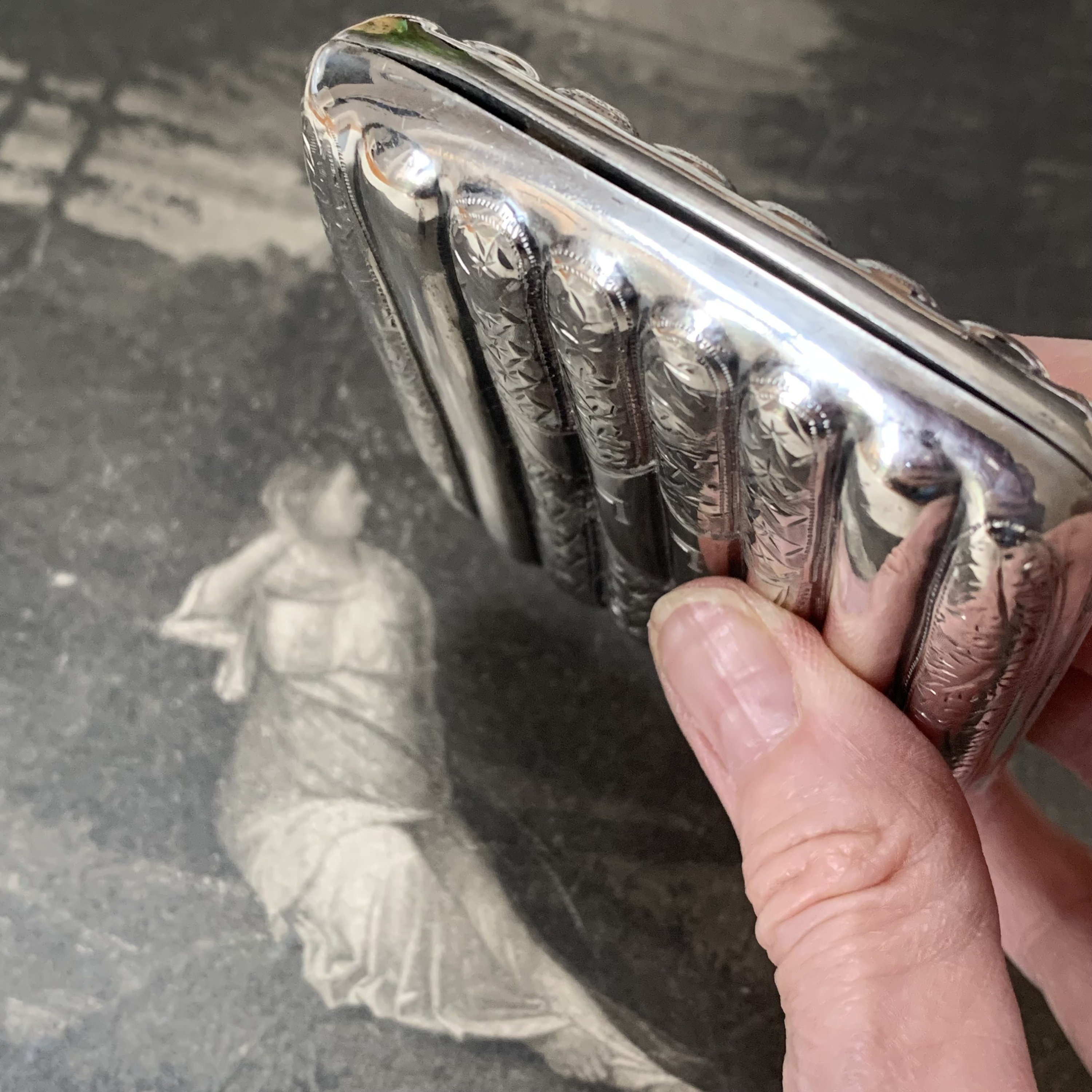 Generous dimensions of 88mm long x 71mm wide and a depth of 15mm. This delightful antique case has a generous weight of 81.2 grams. A beautiful example of an antique case.