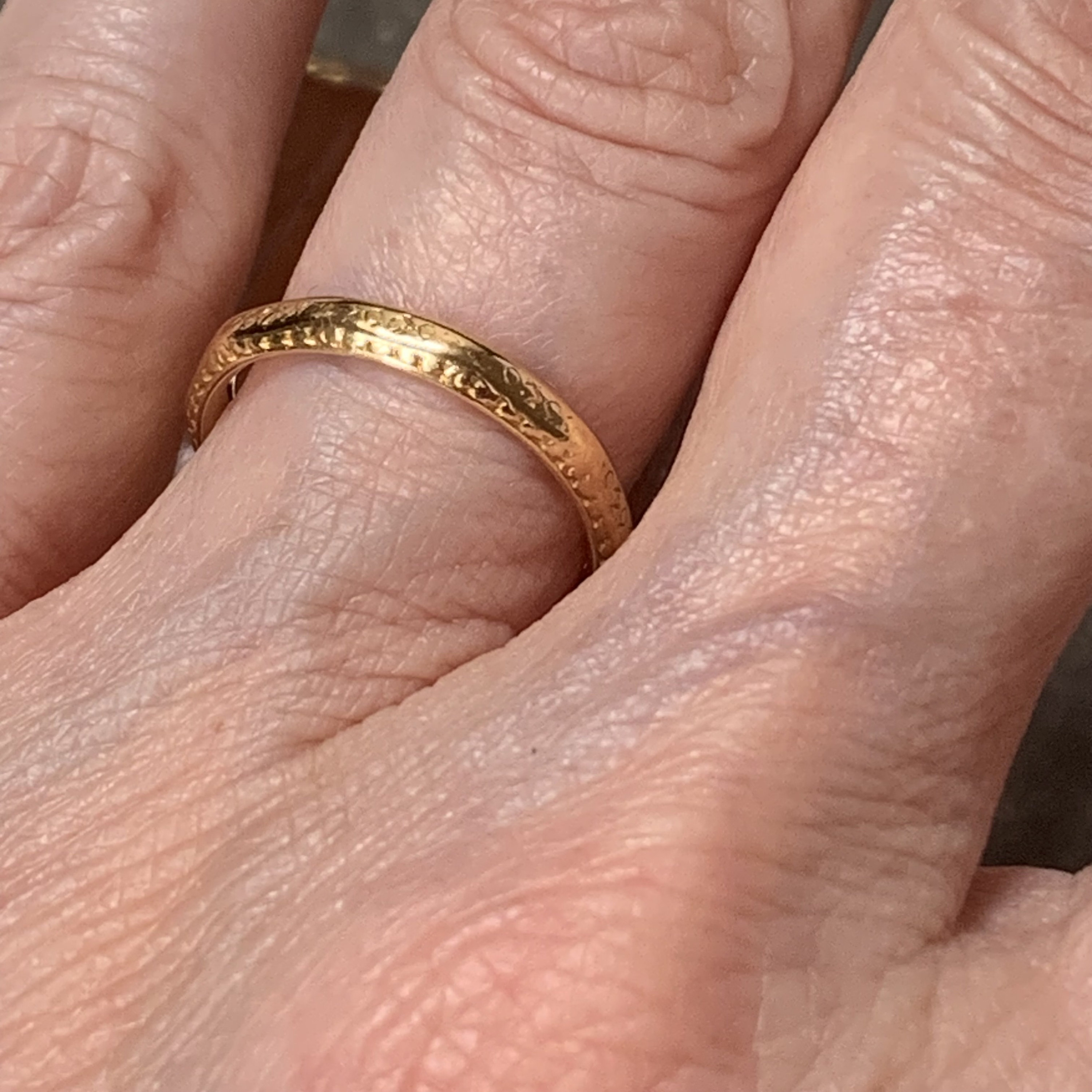 This preowned 22ct gold wedding band is a beautiful and rare piece, offering a perfect blend of historical significance, cultural value, and timeless elegance.