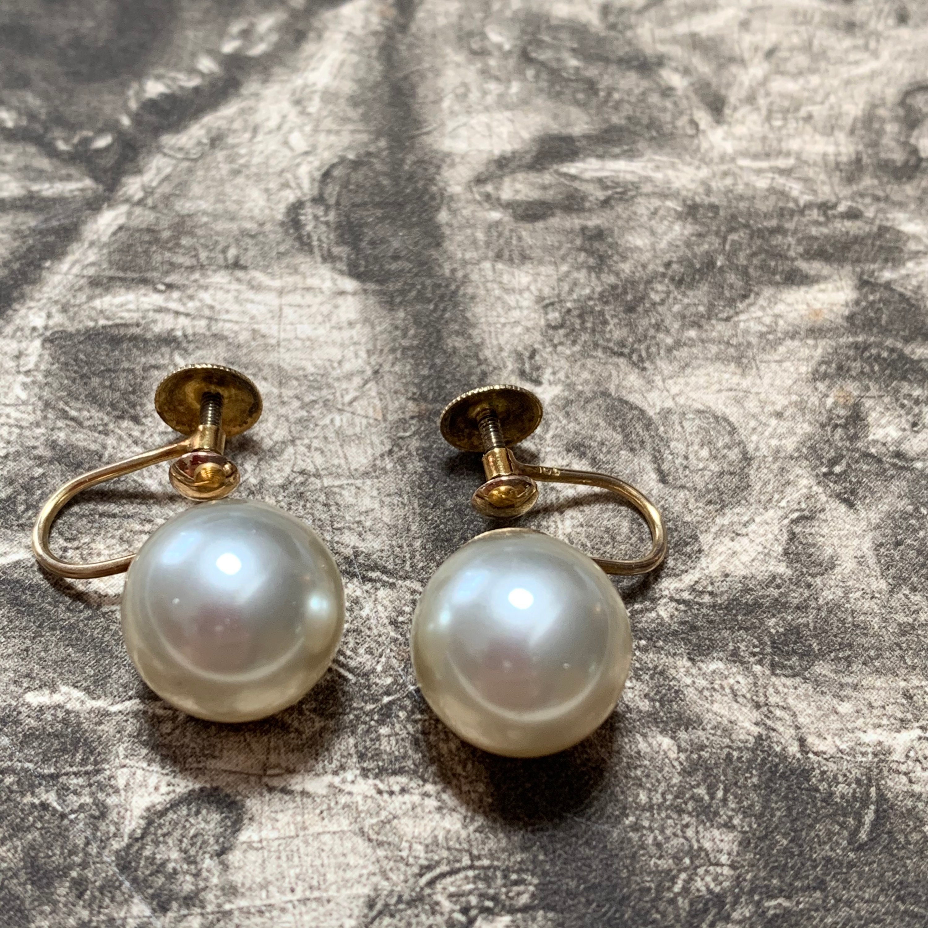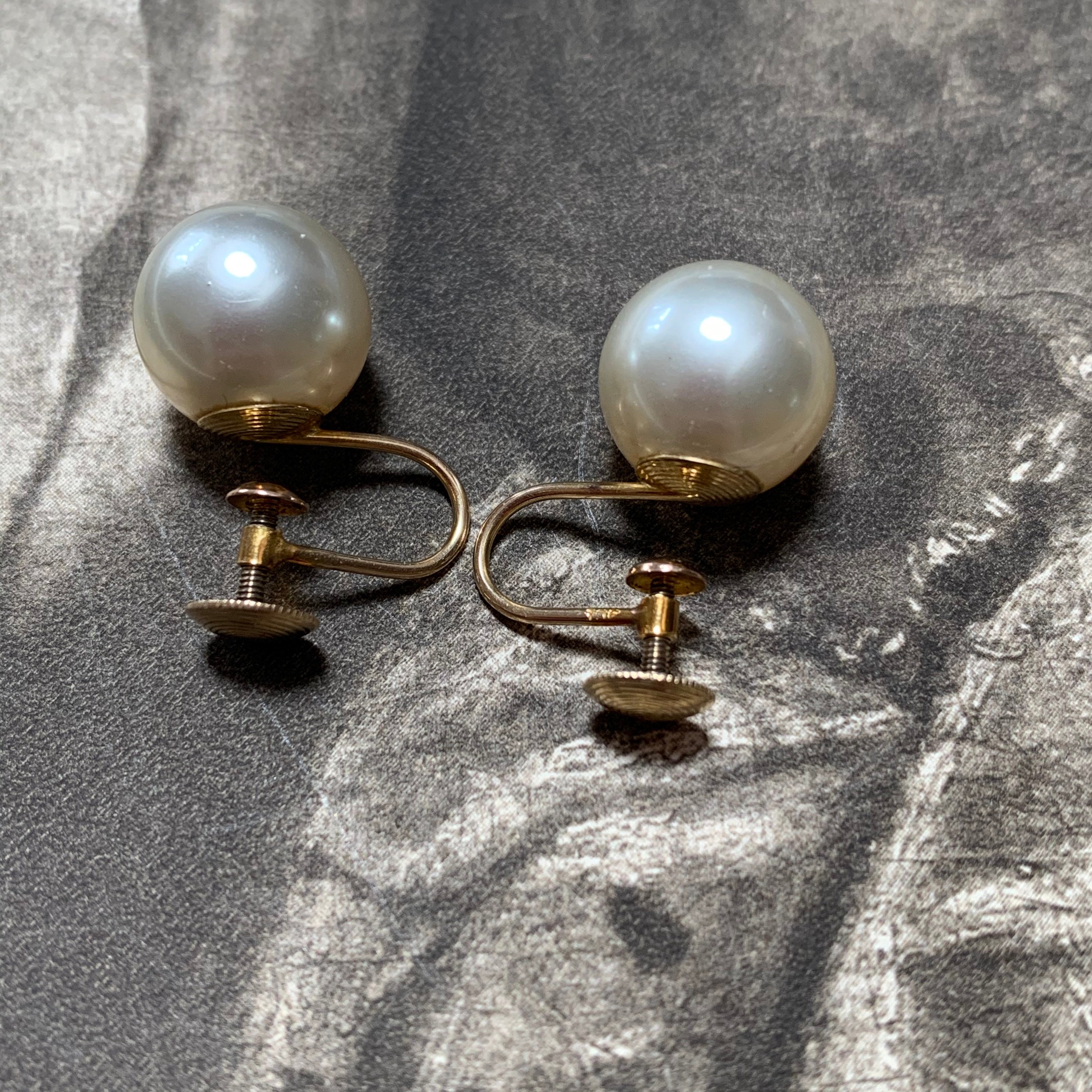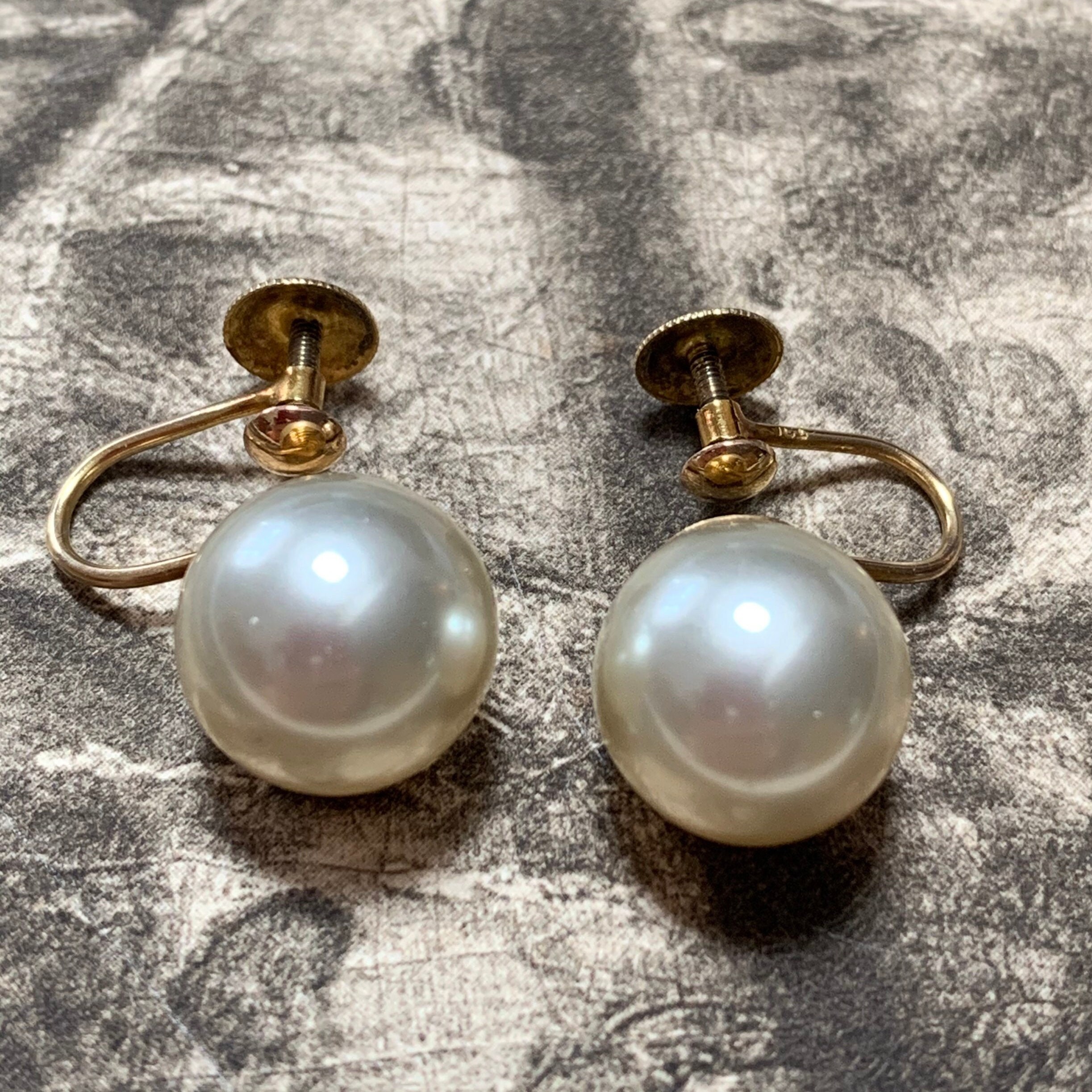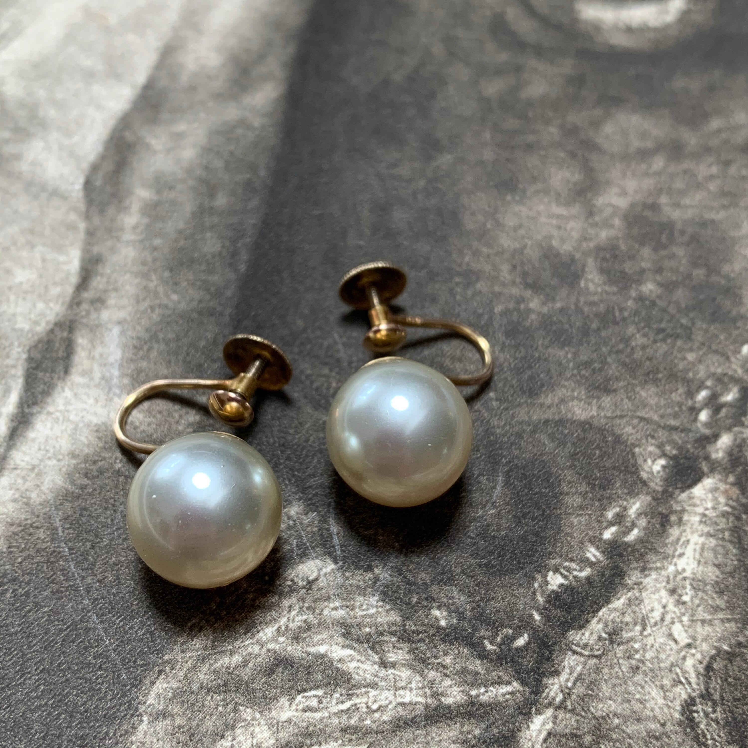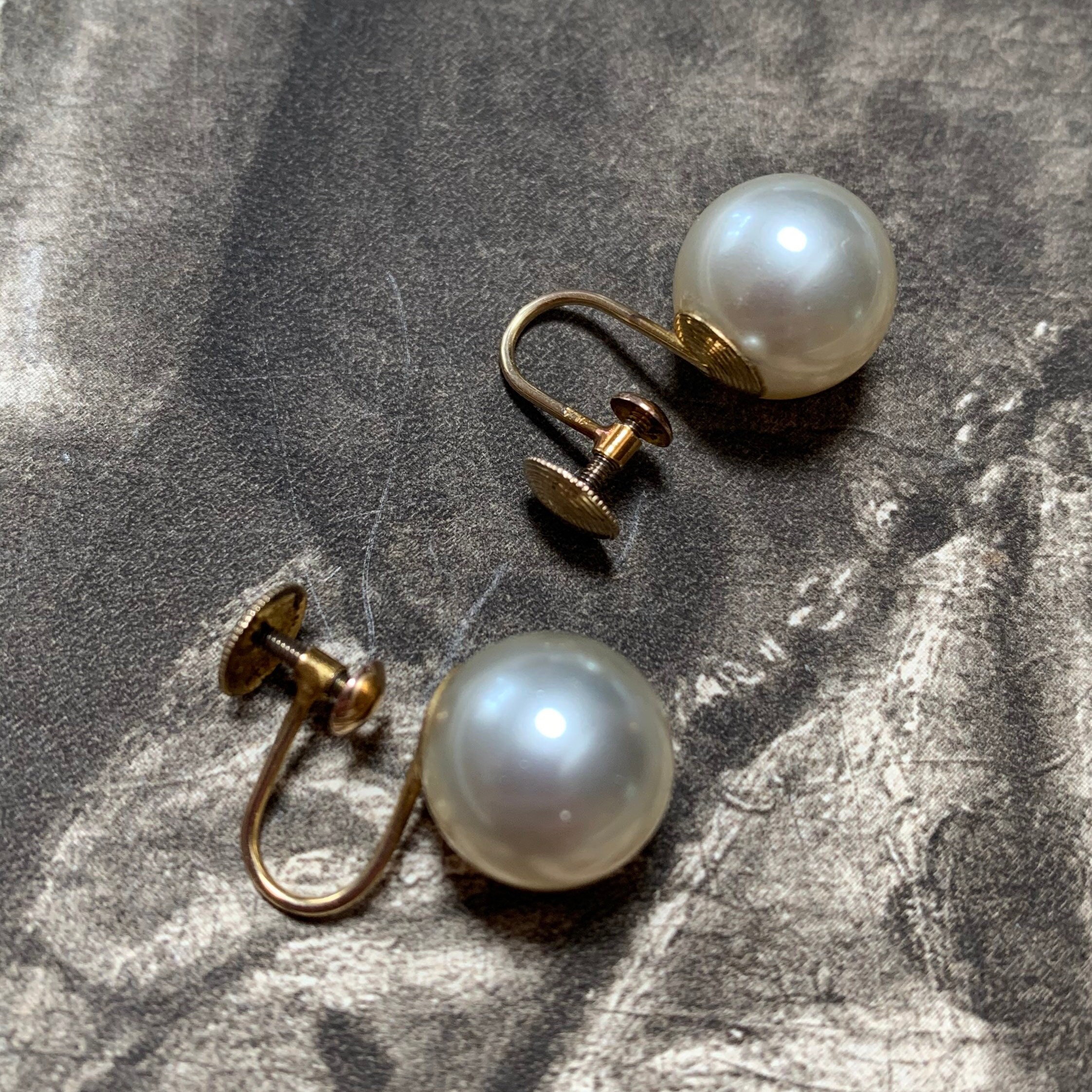 The screw mechanisms of the earrings function flawlessly, guaranteeing a secure and comfortable fit. Despite their age, these earrings remain in very good condition, a testament to their craftsmanship. It's worth noting that upon close inspection, a few minor marks are visible on one of the pearl beads.