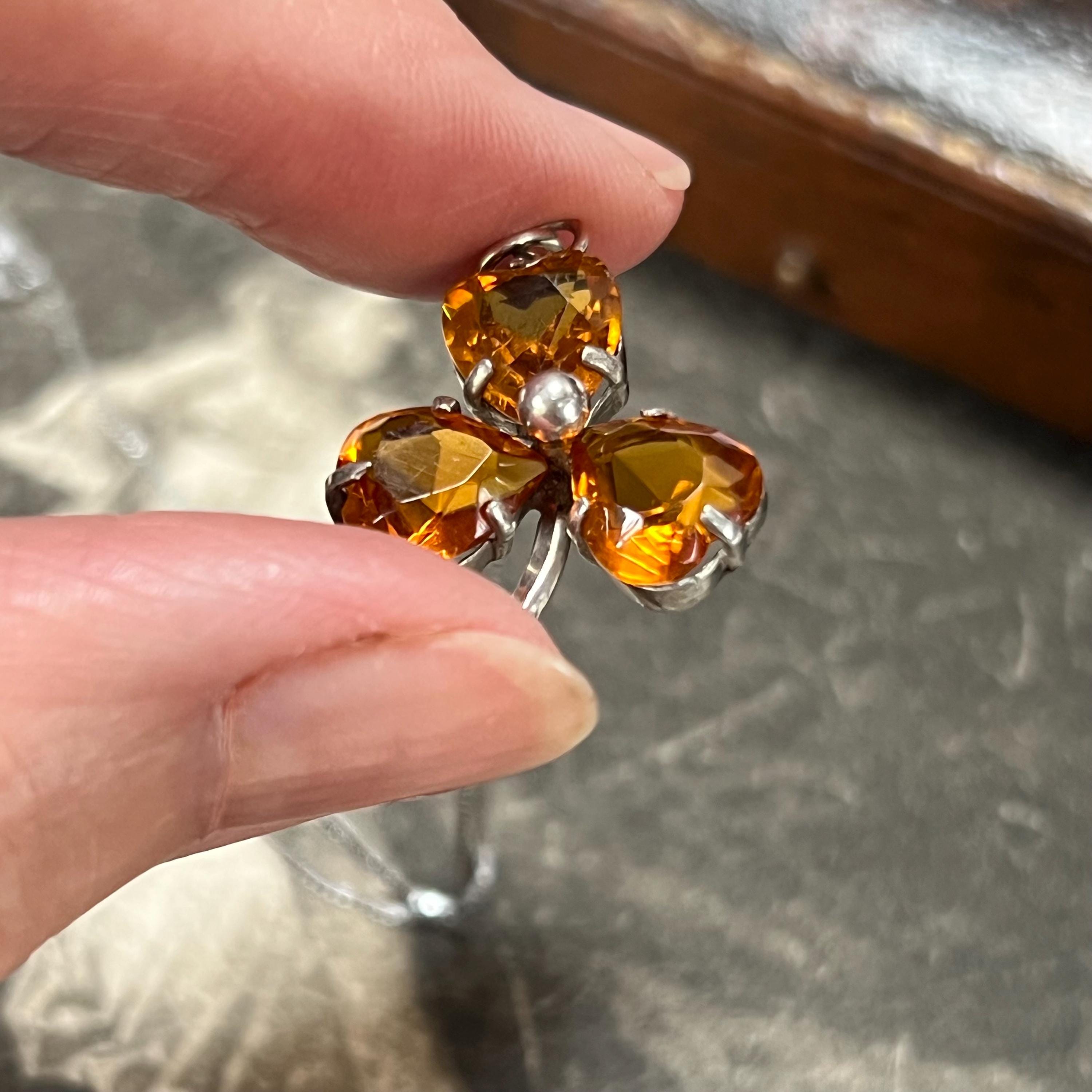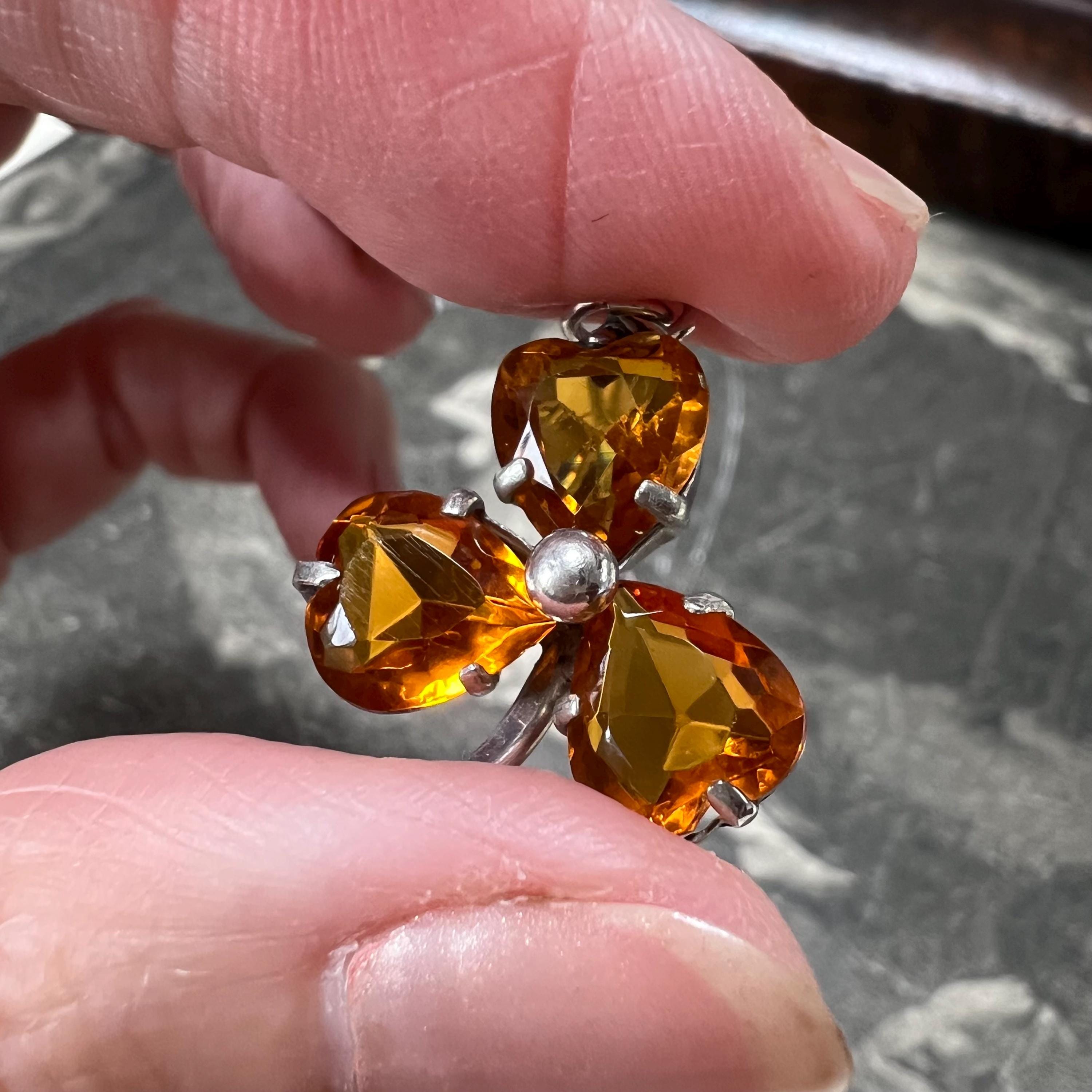 The citrines are securely claw-set in sterling silver, their warm honey-gold tones glowing against the cool shine of the early Art Deco mount. This piece is rich in history, character, and gentle charm — a perfect gift for lovers of antique gemstone jewellery.