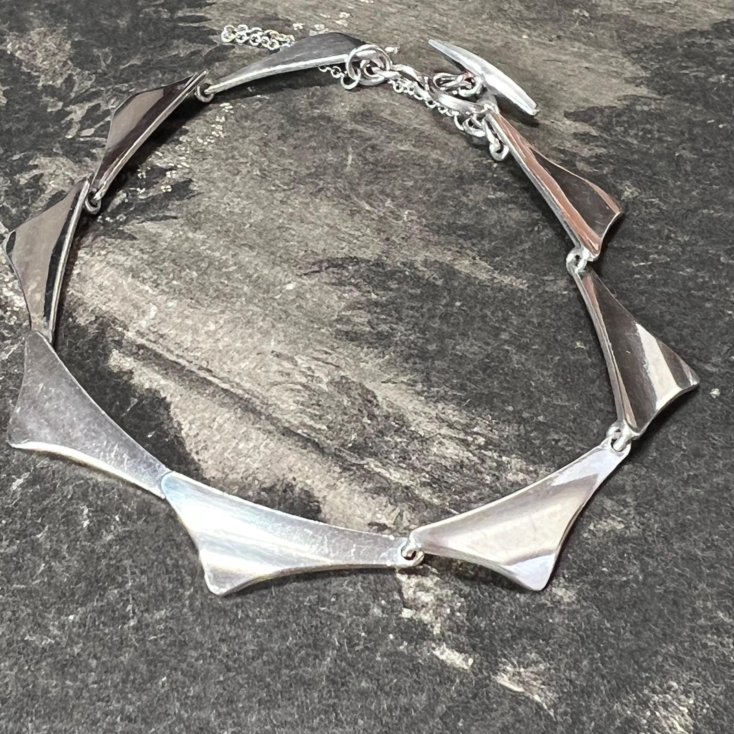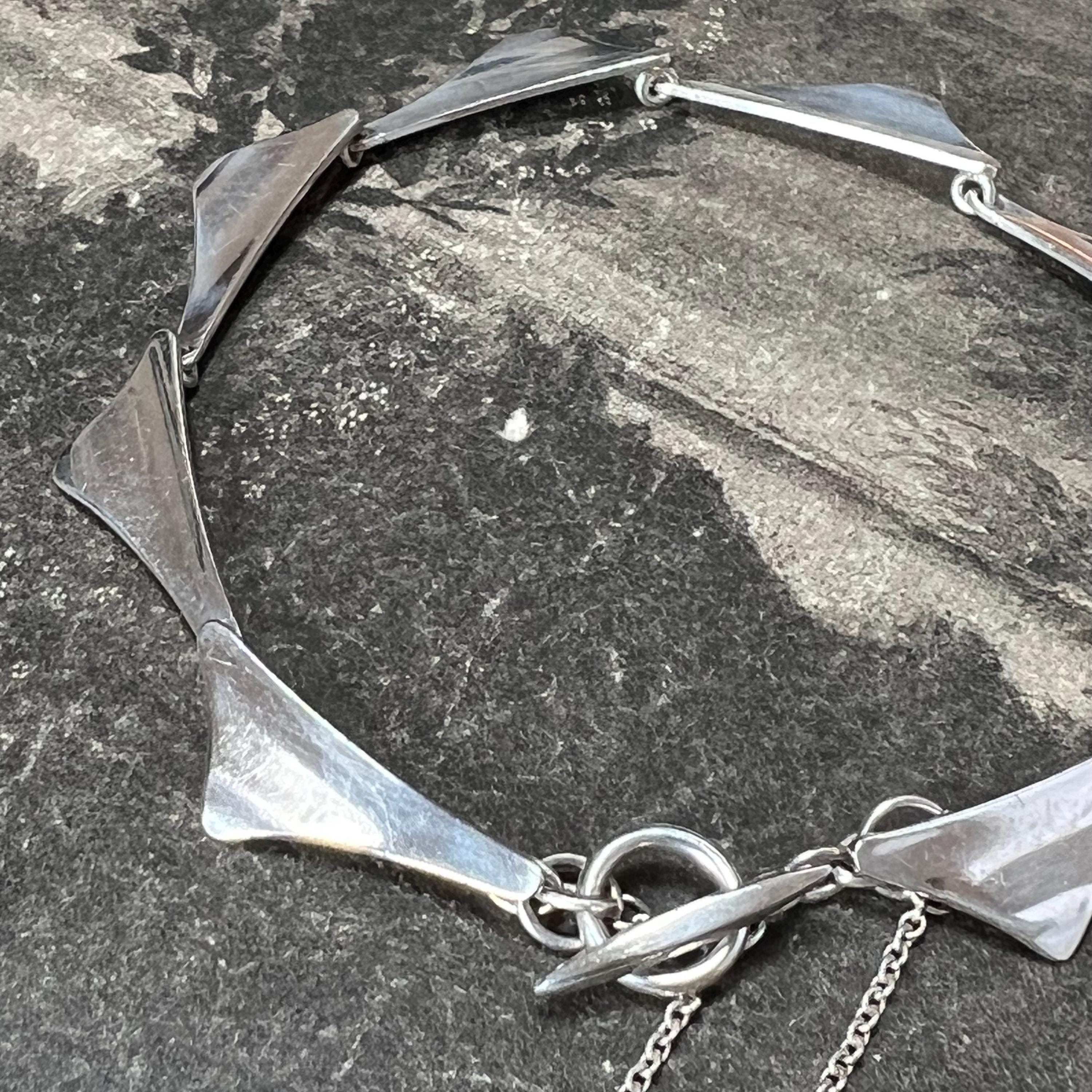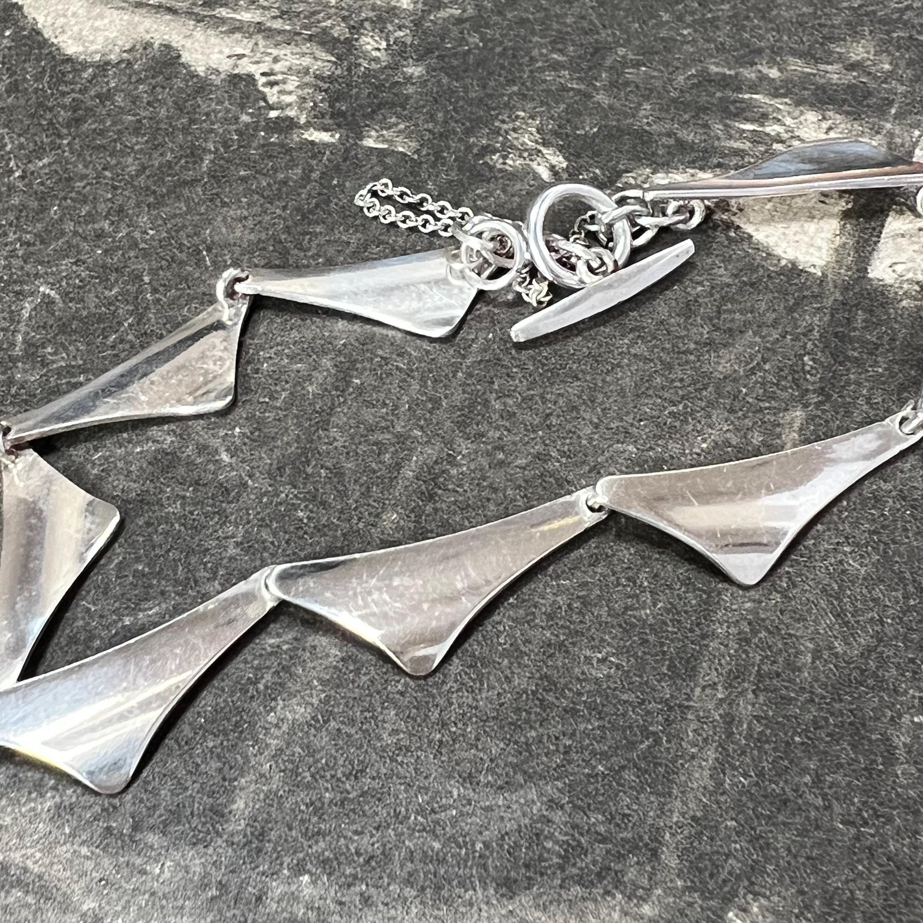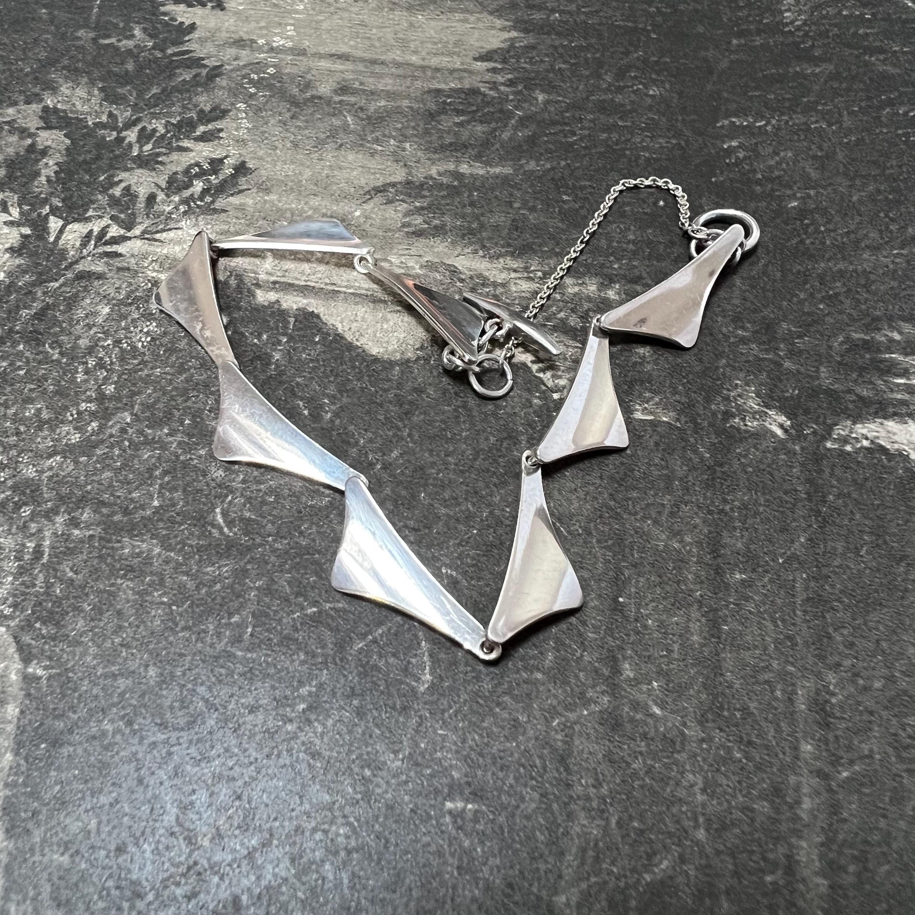 Theodor Skat Rordam Silver Wing Bracelet Denmark Circa 1960s. A lovely modernist sterling silver bracelet by the designer Thoedor Skat Rordam - Denmark, consisting of individual sterling silver wing style links with a T style fastener.. The bracelet measures 18.5 cm long and is stamped ‘Sterling 925, TSR and Denmark to its end link.