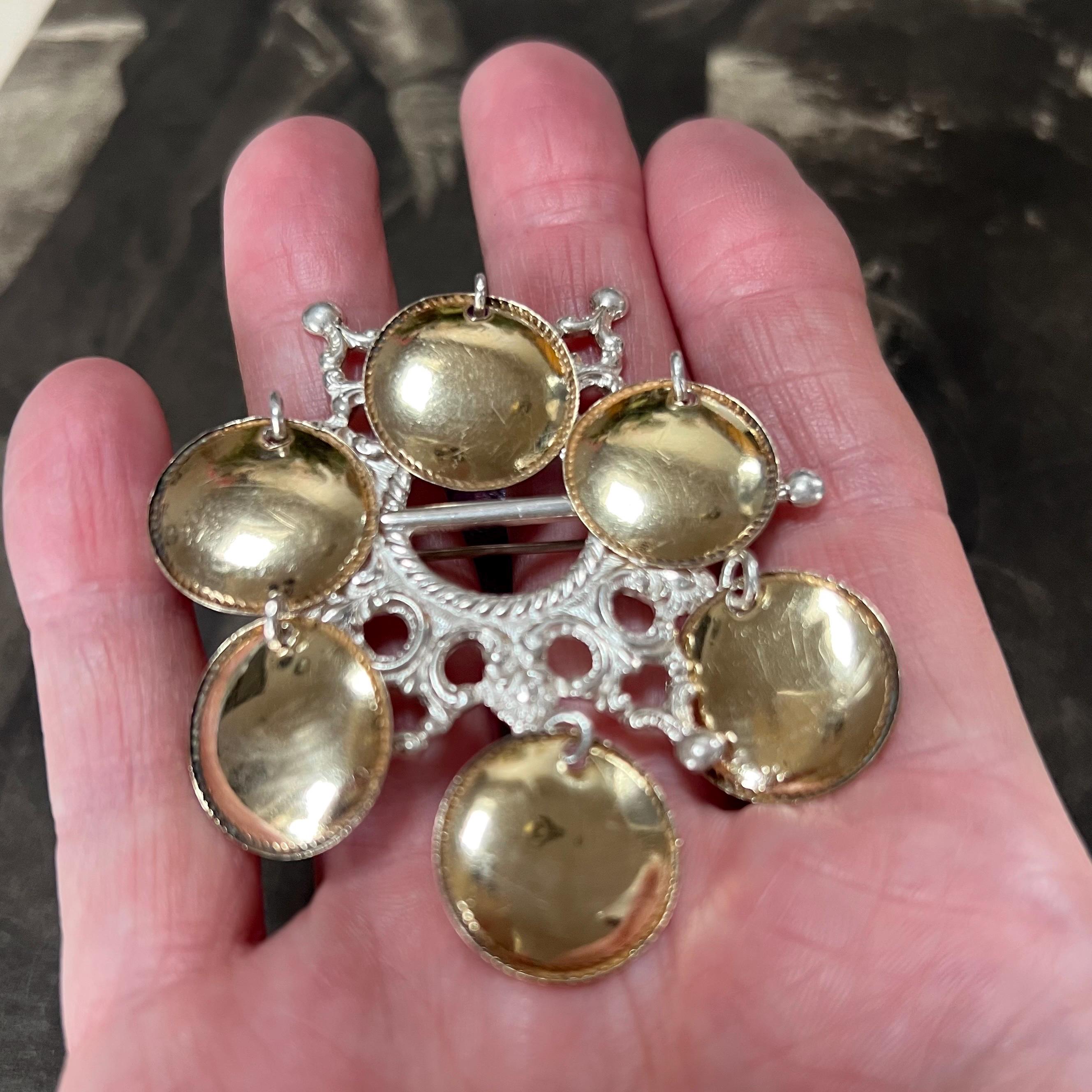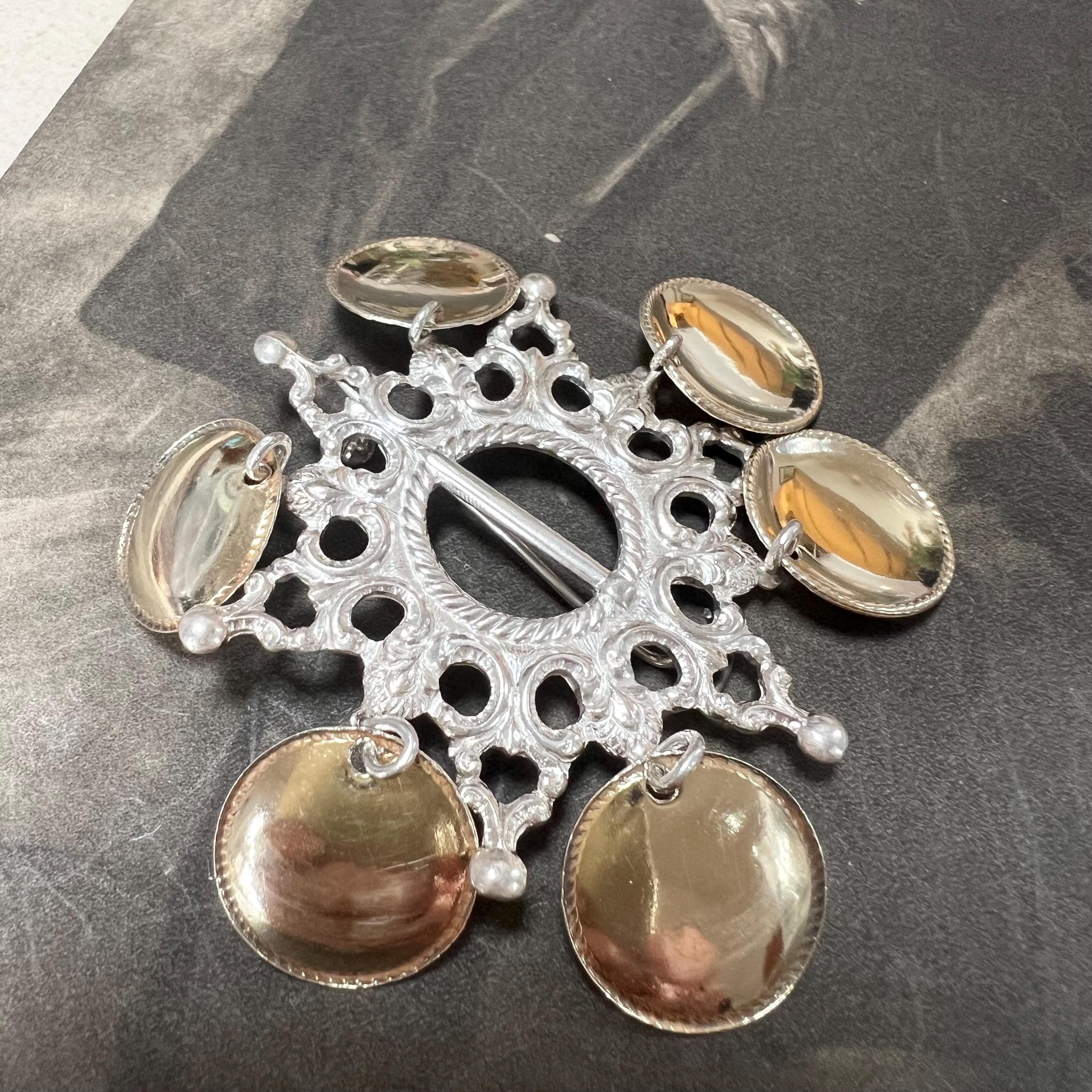 The traditional jewelry of Norway, called Solje (meaning “shiny” or “sunny”), dates back several centuries. Originally handmade from silver and other precious metals, Soljes were pins or buckles used to fasten a woman’s collar ribbon and were traditionally worn with the Bunad, Norway’s national costume. Over time, different regions developed distinct styles featuring motifs like flowers, hearts, and teardrops. Sizes ranged from small (about an inch) to large (over four inches), with wealthier women often wearing larger pieces. Considered heirlooms, Soljes were treasured and passed down through generations.