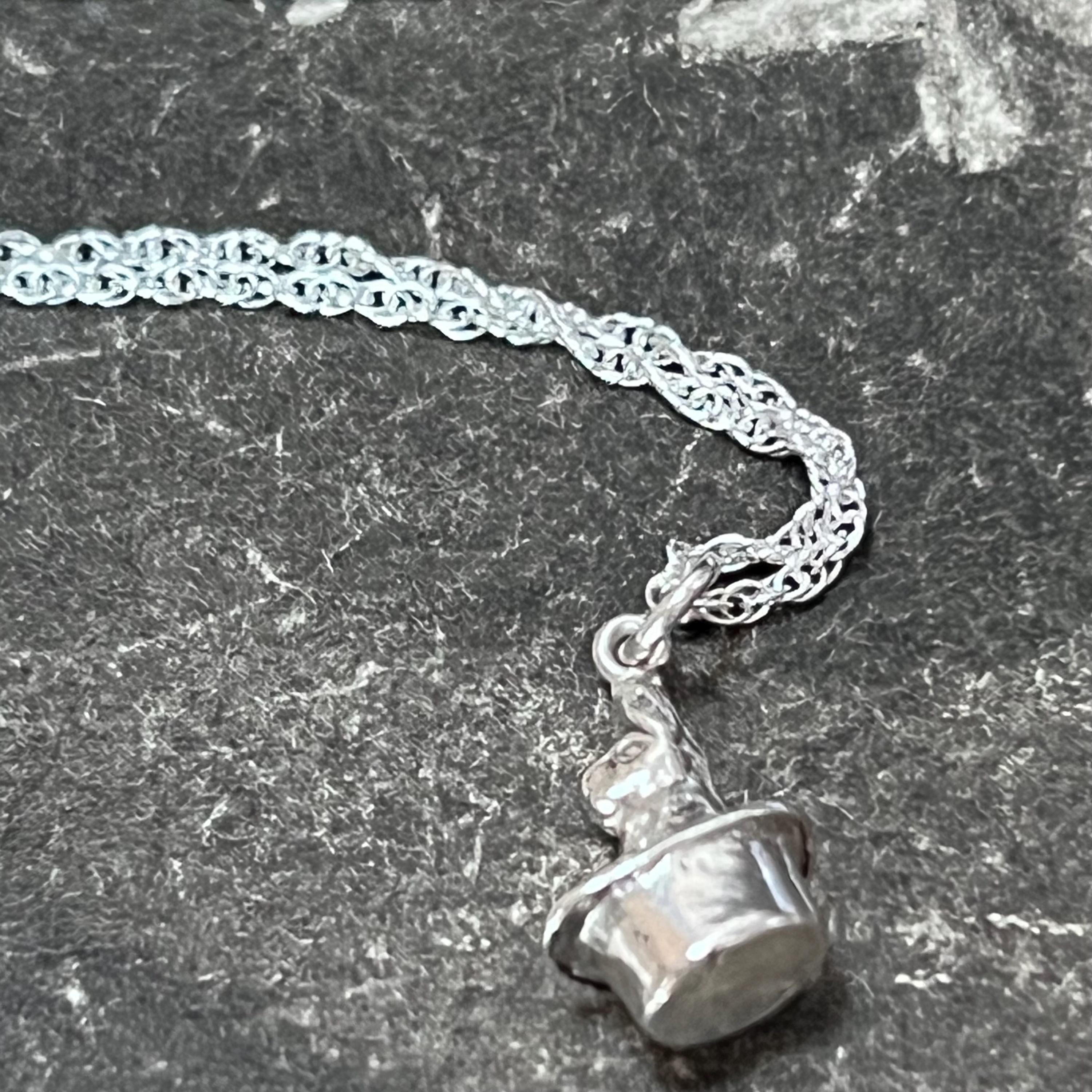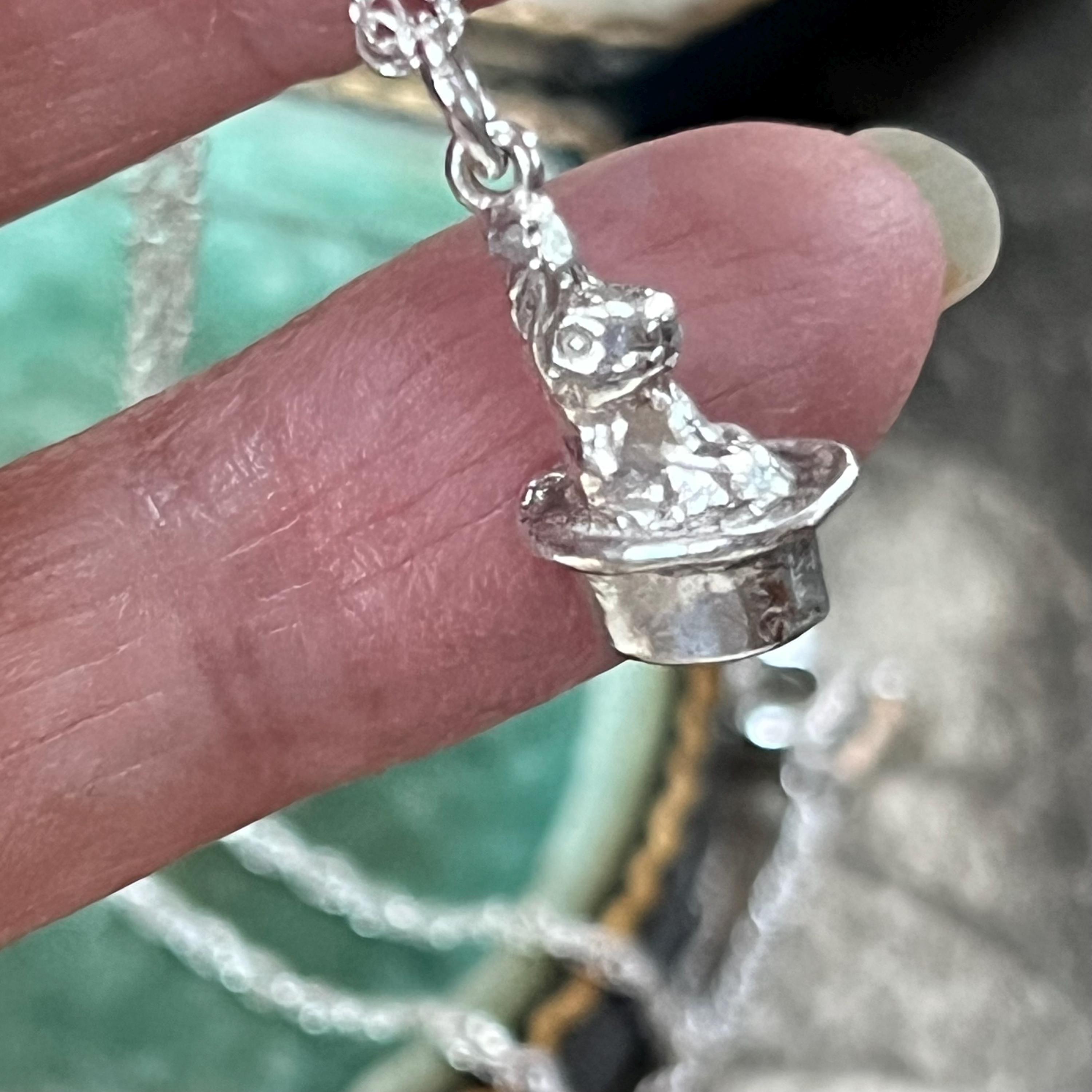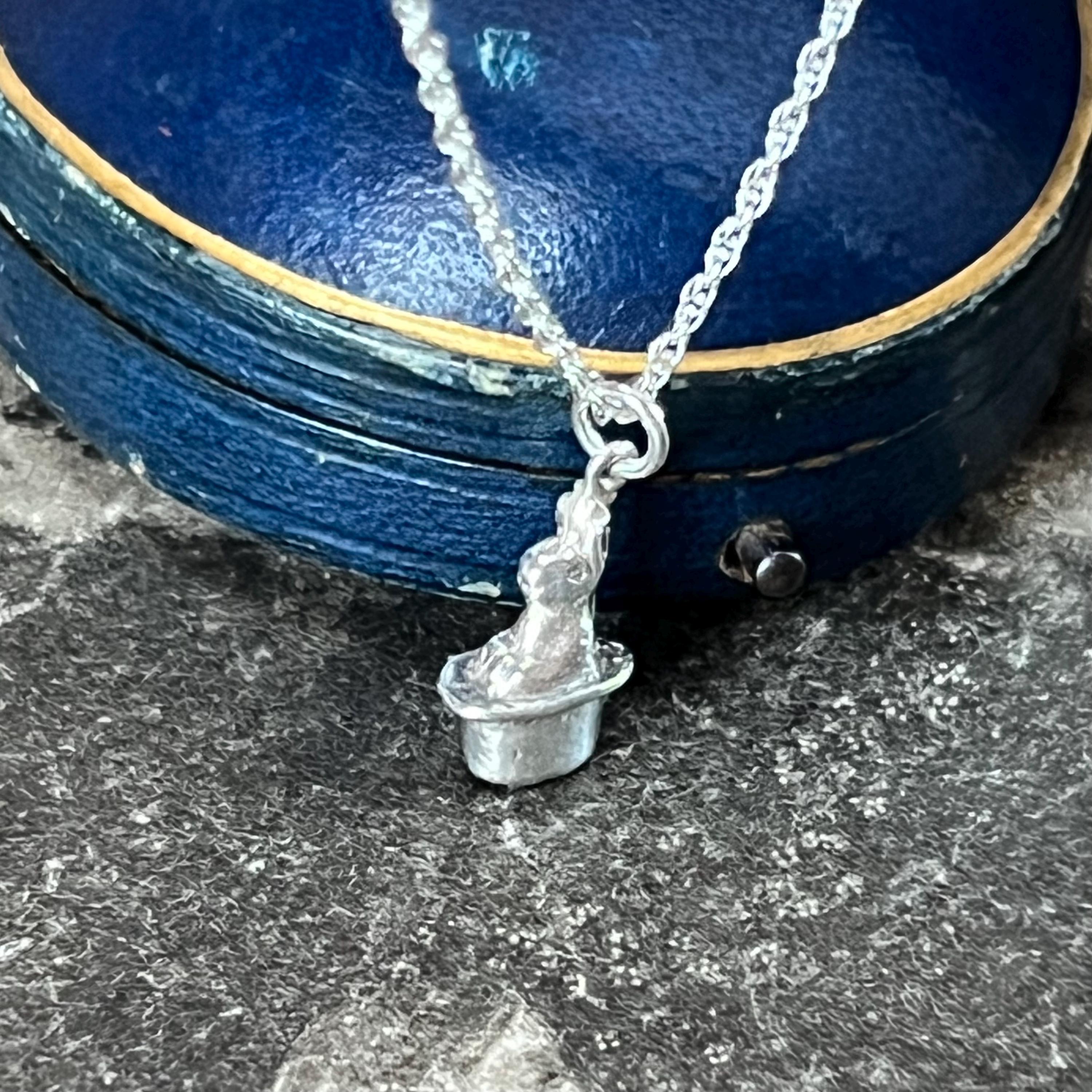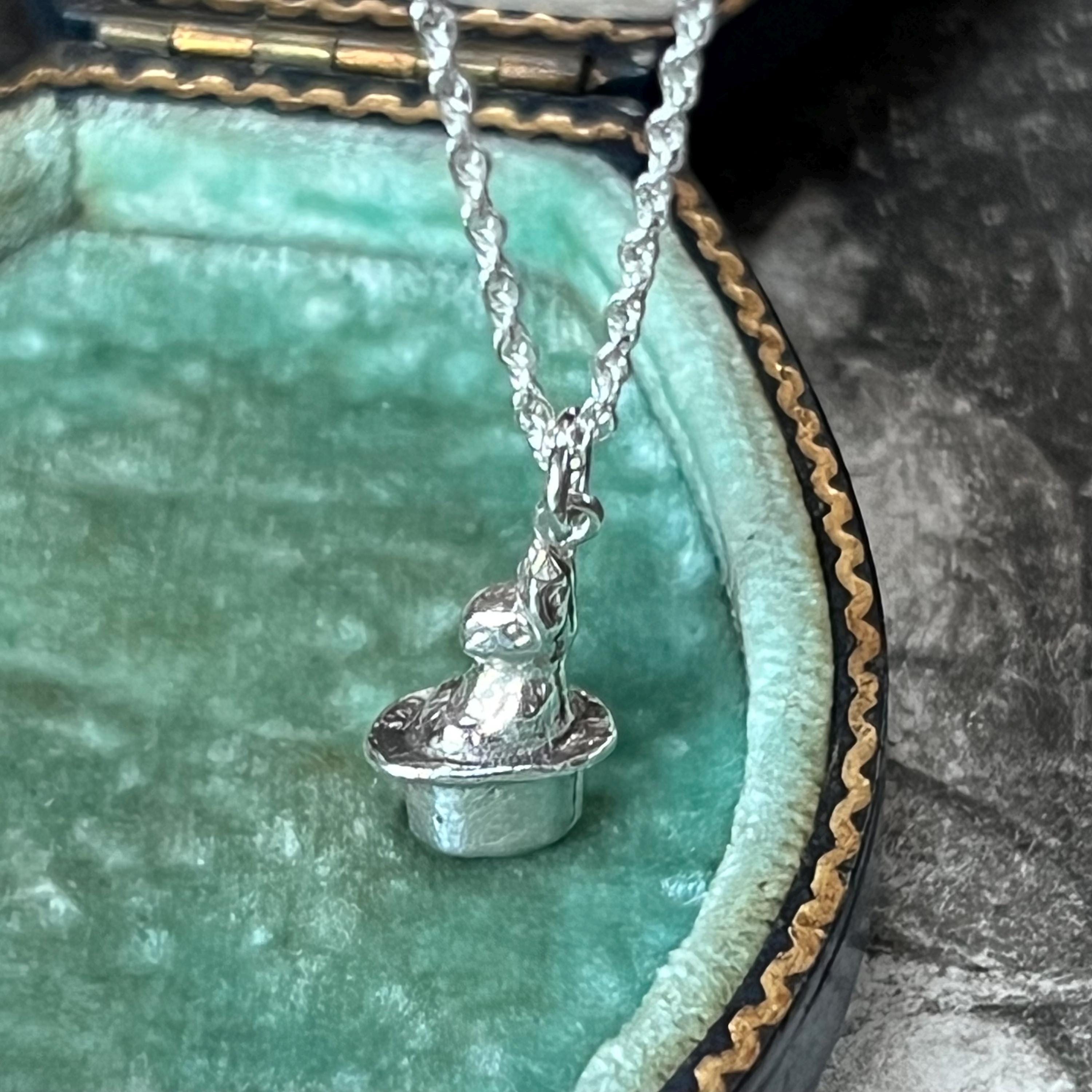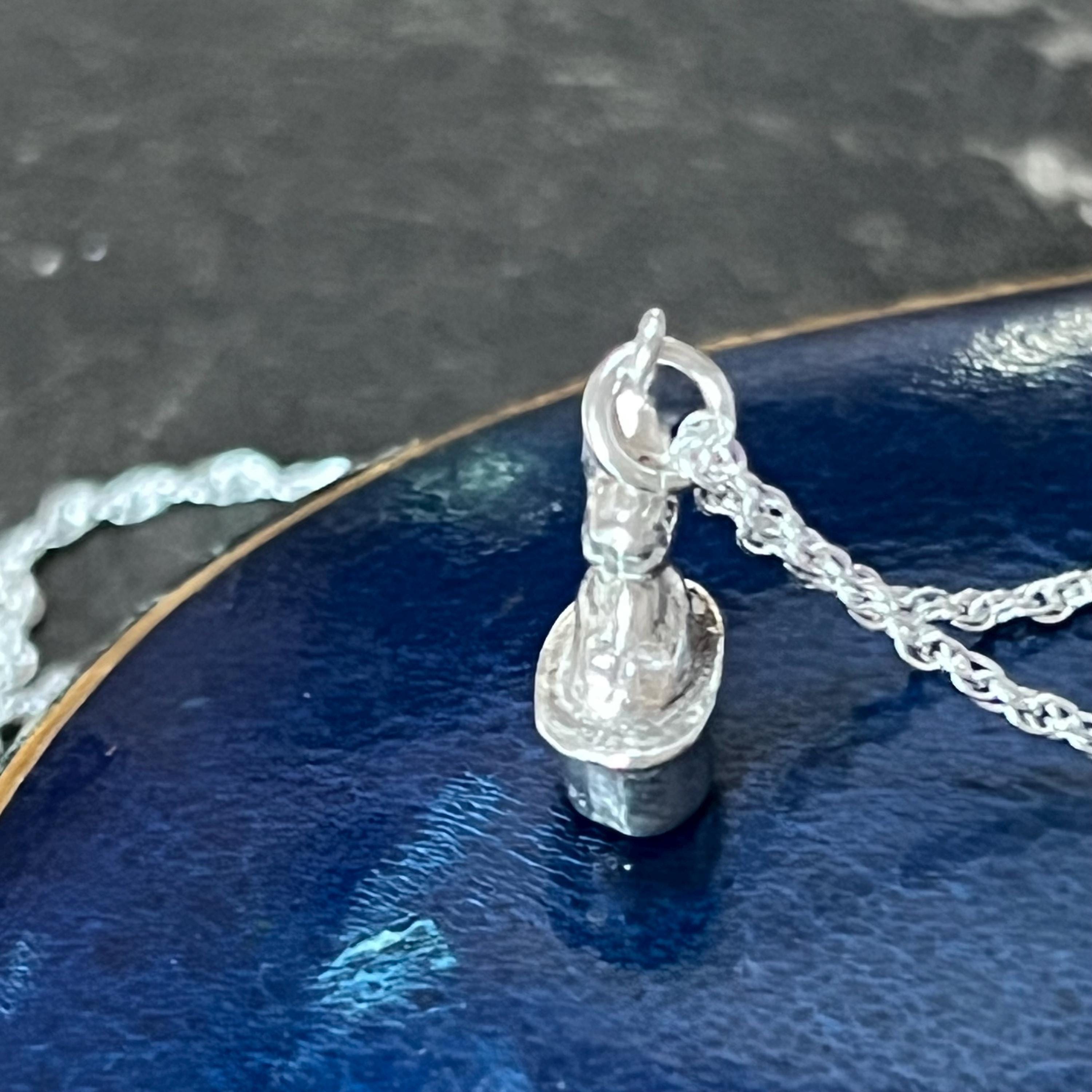 Bring a touch of whimsical charm to your jewellery collection with this vintage silver rabbit in a hat charm pendant, complete with an eco-friendly 18" (45 cm) recycled 925 sterling silver rope chain. This delightful lucky rabbit design makes a meaningful and memorable gift for vintage lovers, charm collectors, or anyone who enjoys quirky, magical motifs. Note antique boxes are not included, this will come in eco-friendly packaging.