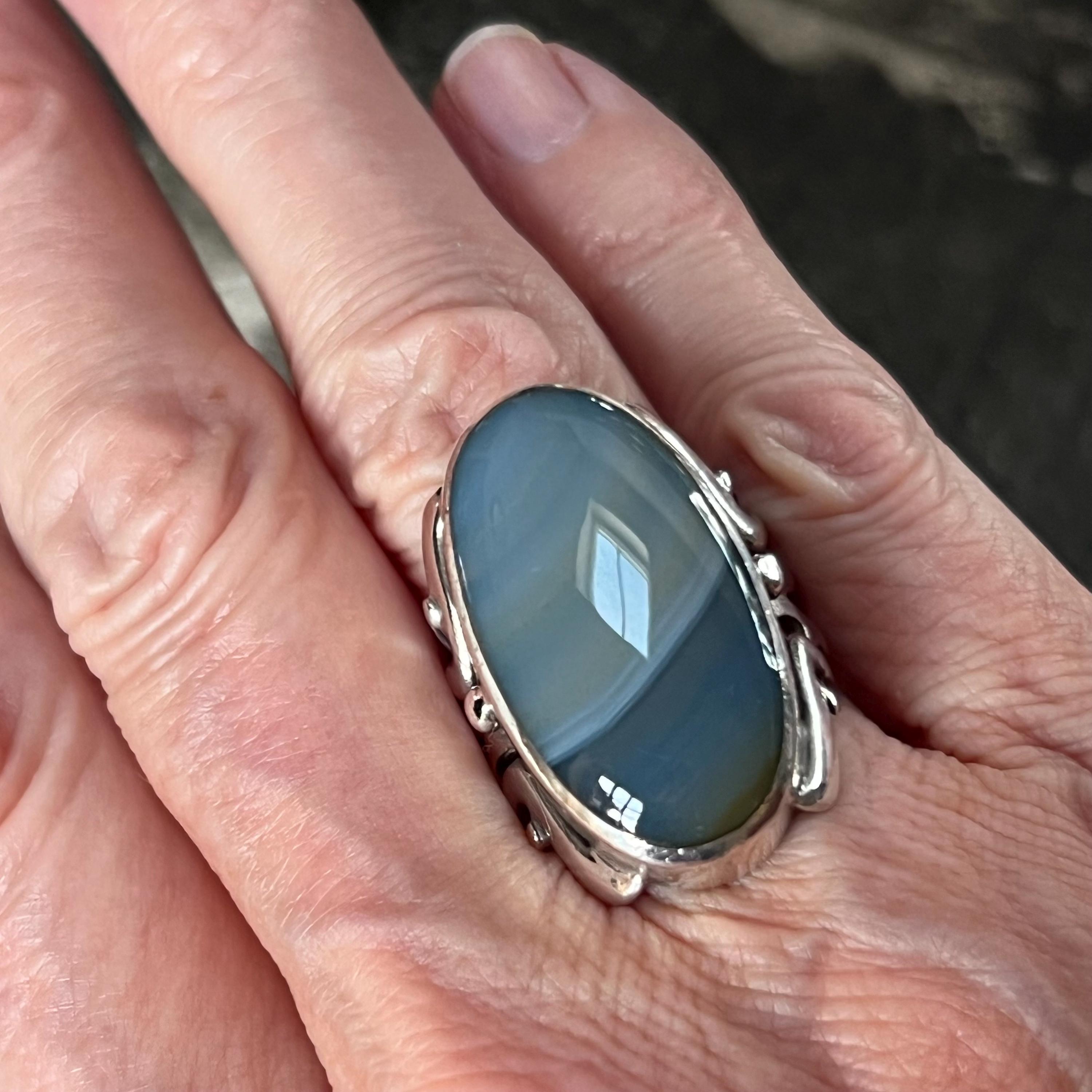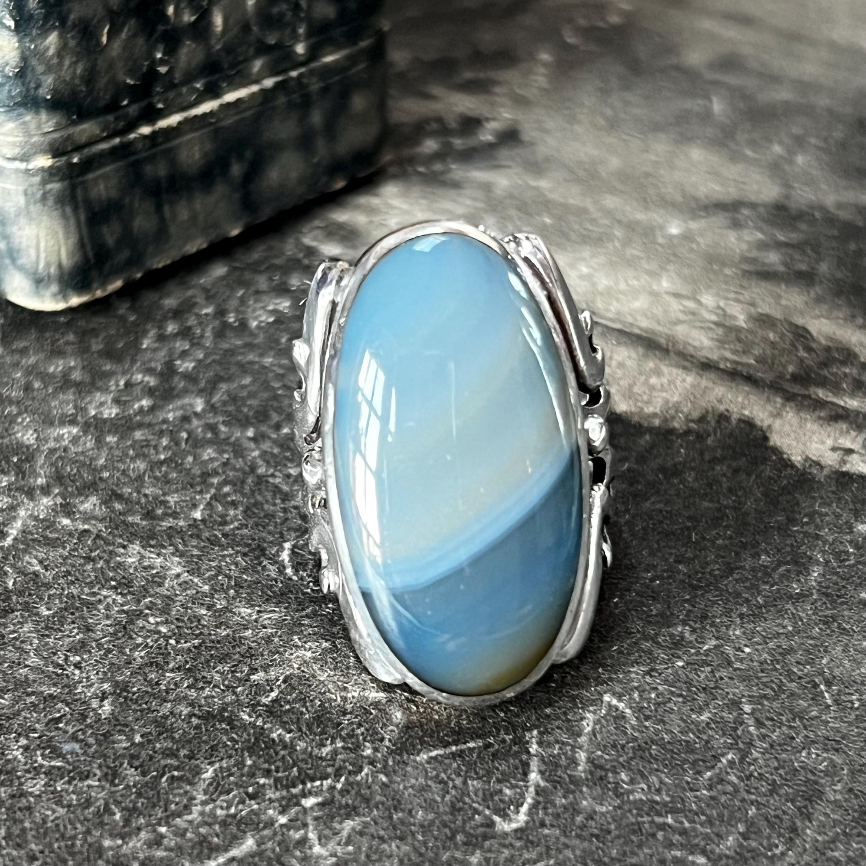 Excellent vintage condition with light wear consistent with age. The agate is free from chips or cracks, and the ring has been professionally polished and is ready to wear.