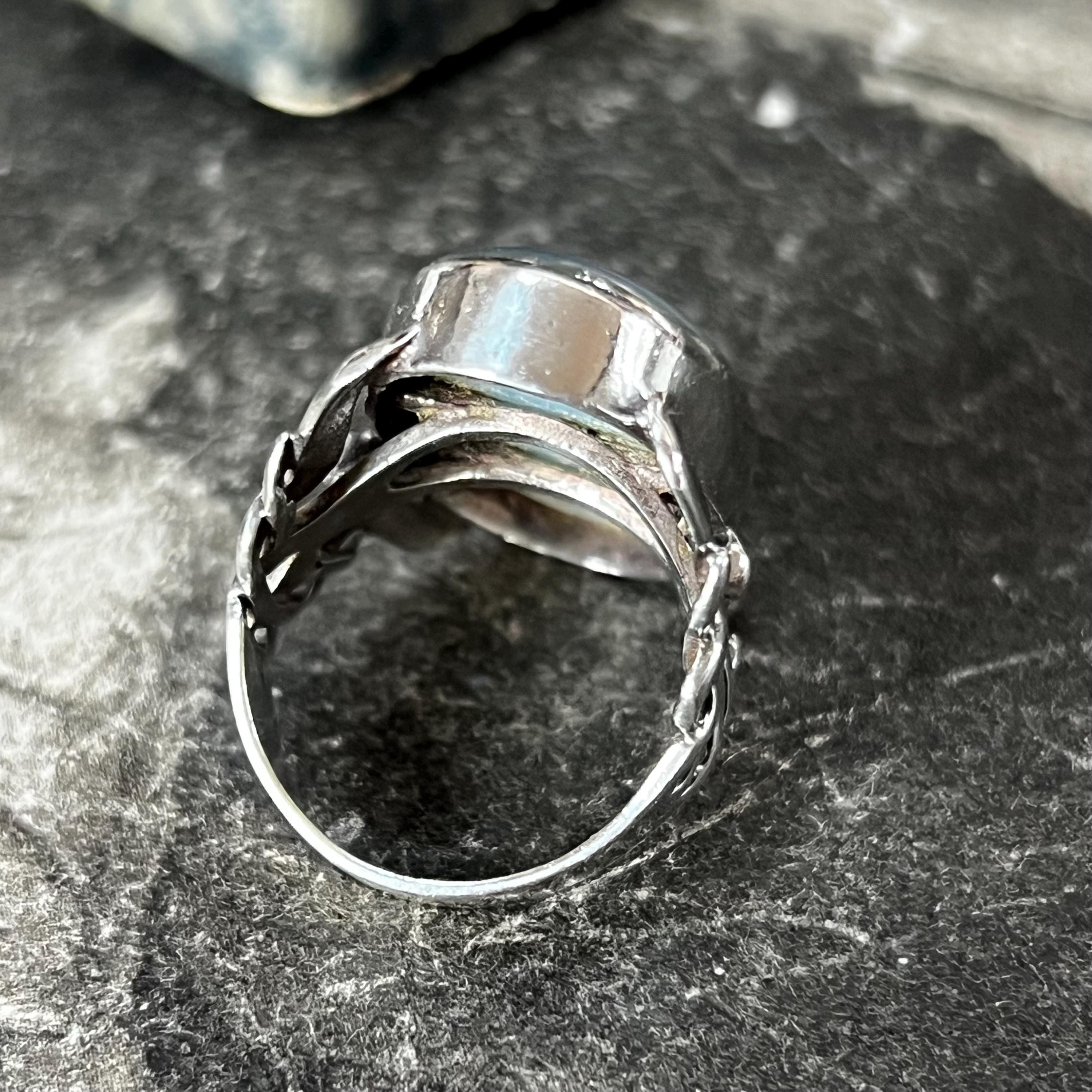 A timeless artisan silver ring with strong presence — ideal for collectors of British studio jewellery, lovers of large gemstone rings, or anyone seeking a distinctive and well-made vintage statement piece.