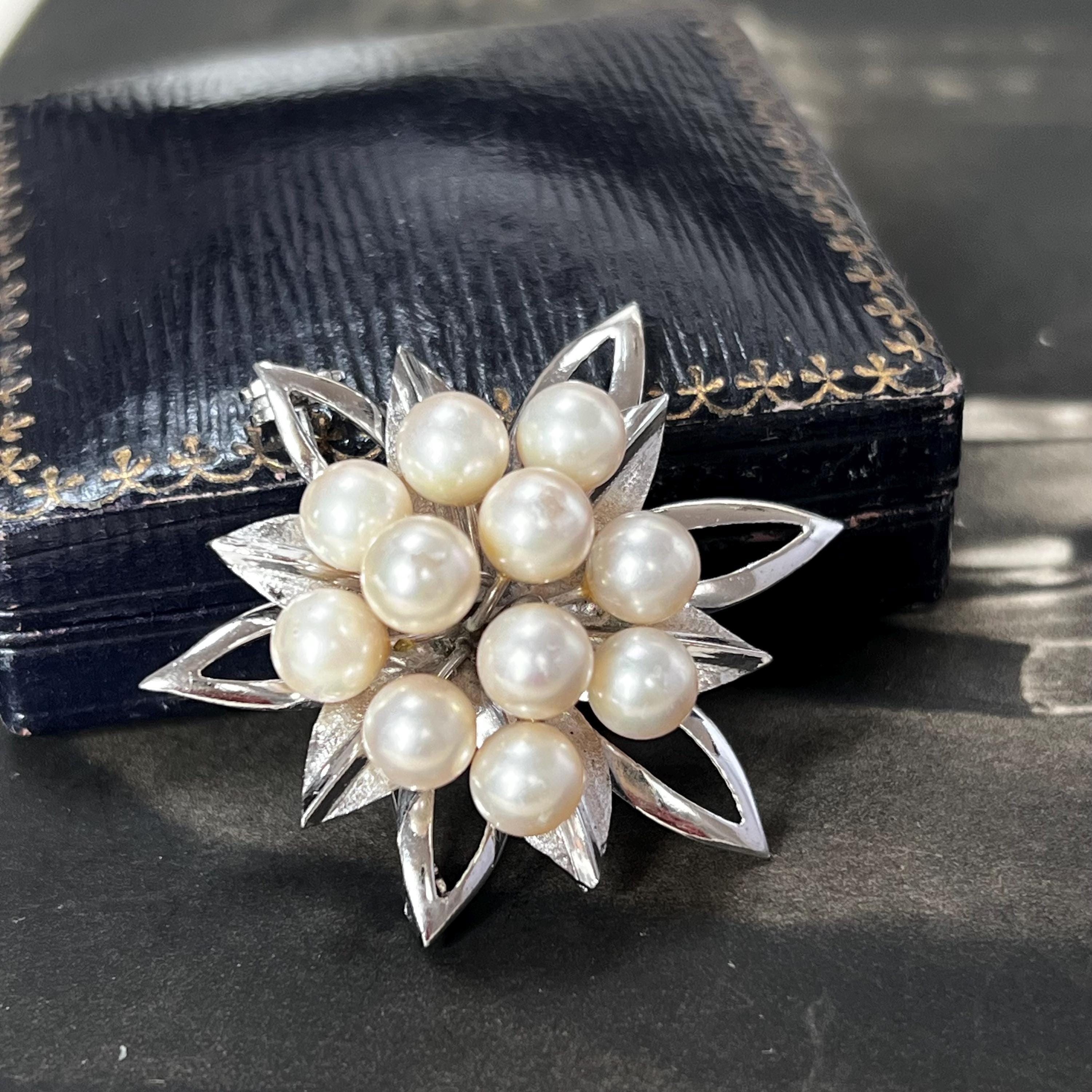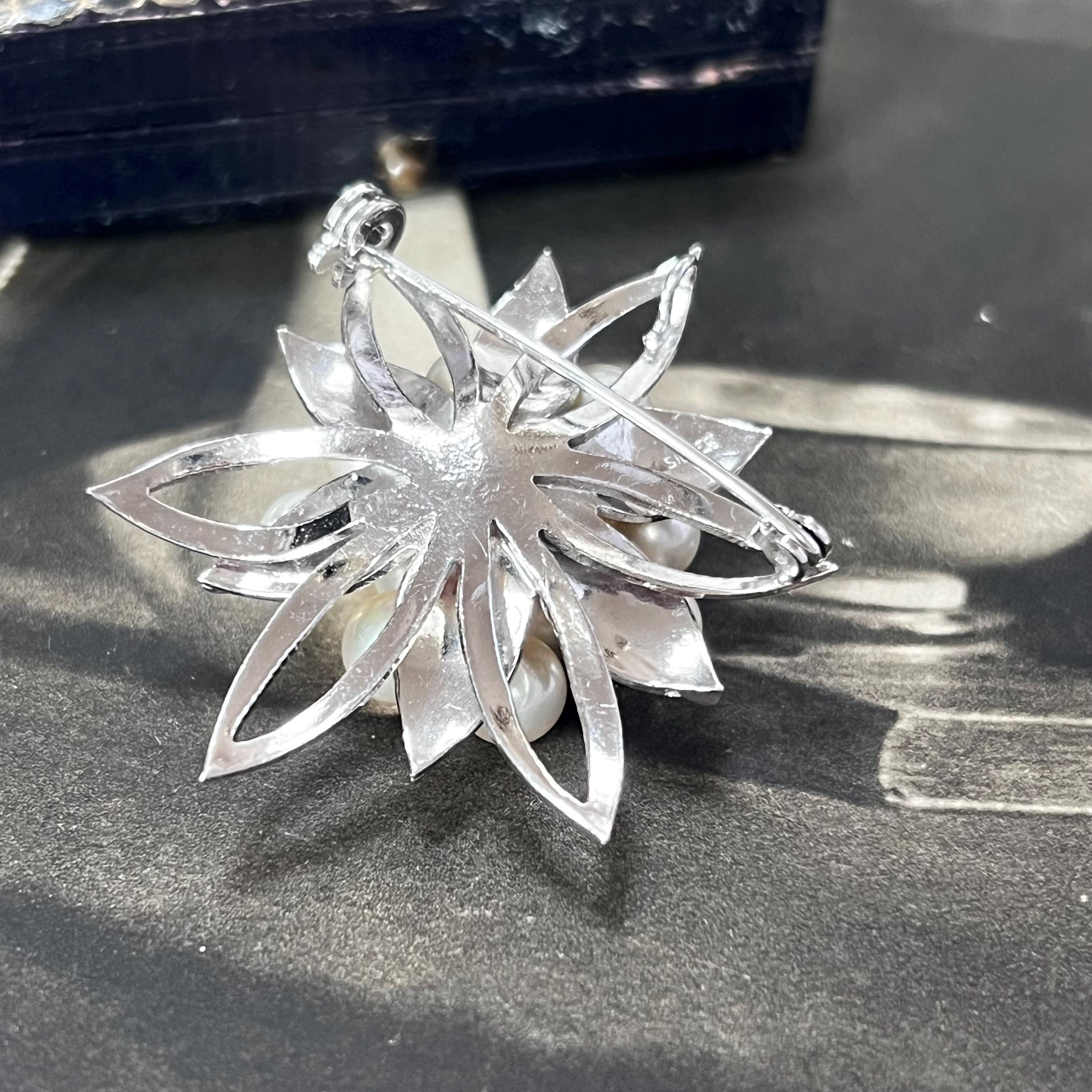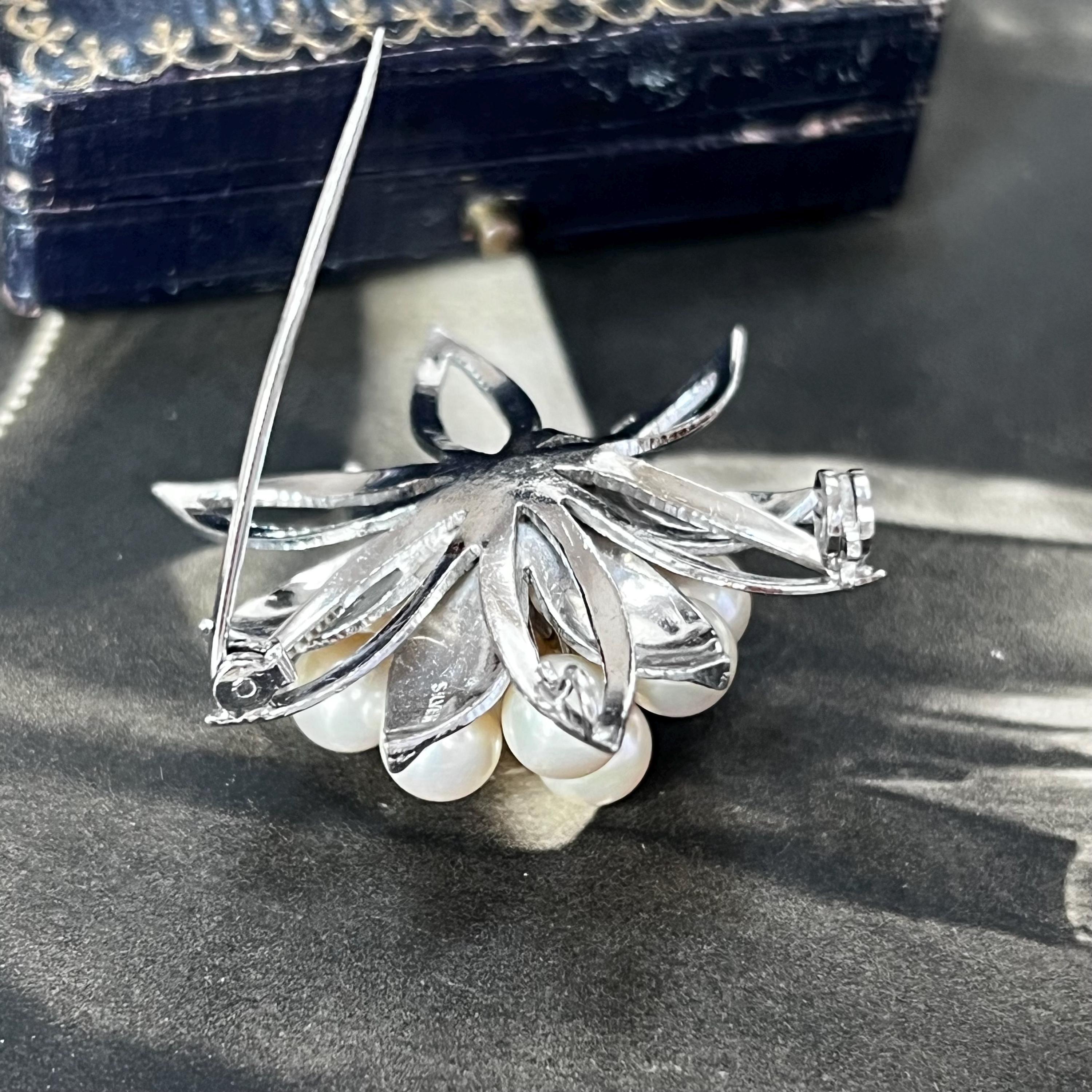 Perfect for lovers of vintage silver jewellery, floral brooches, or pearl-style accessories. Please note, the antique box shown is not included — the brooch will be carefully presented in a new gift box, ready to wear or gift.