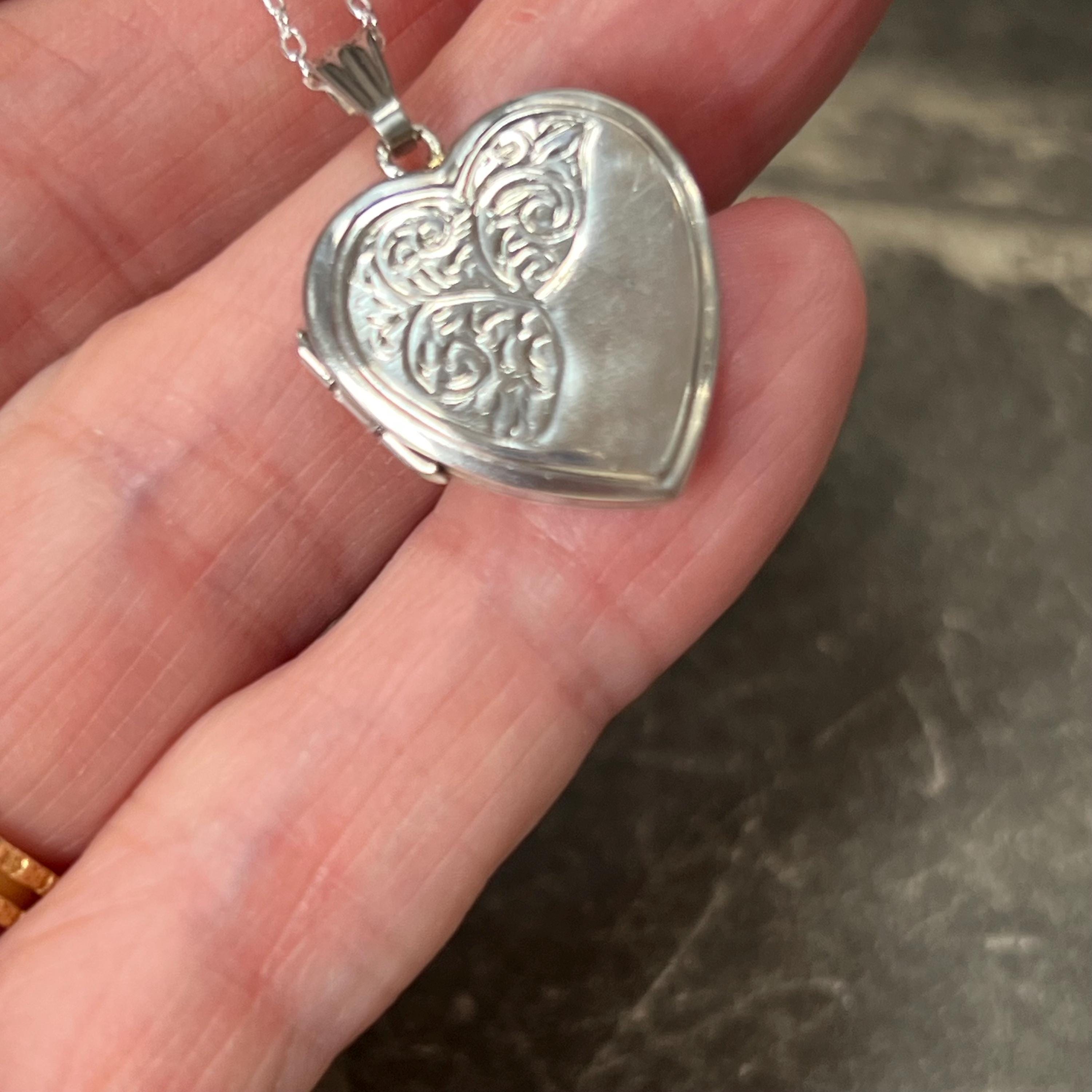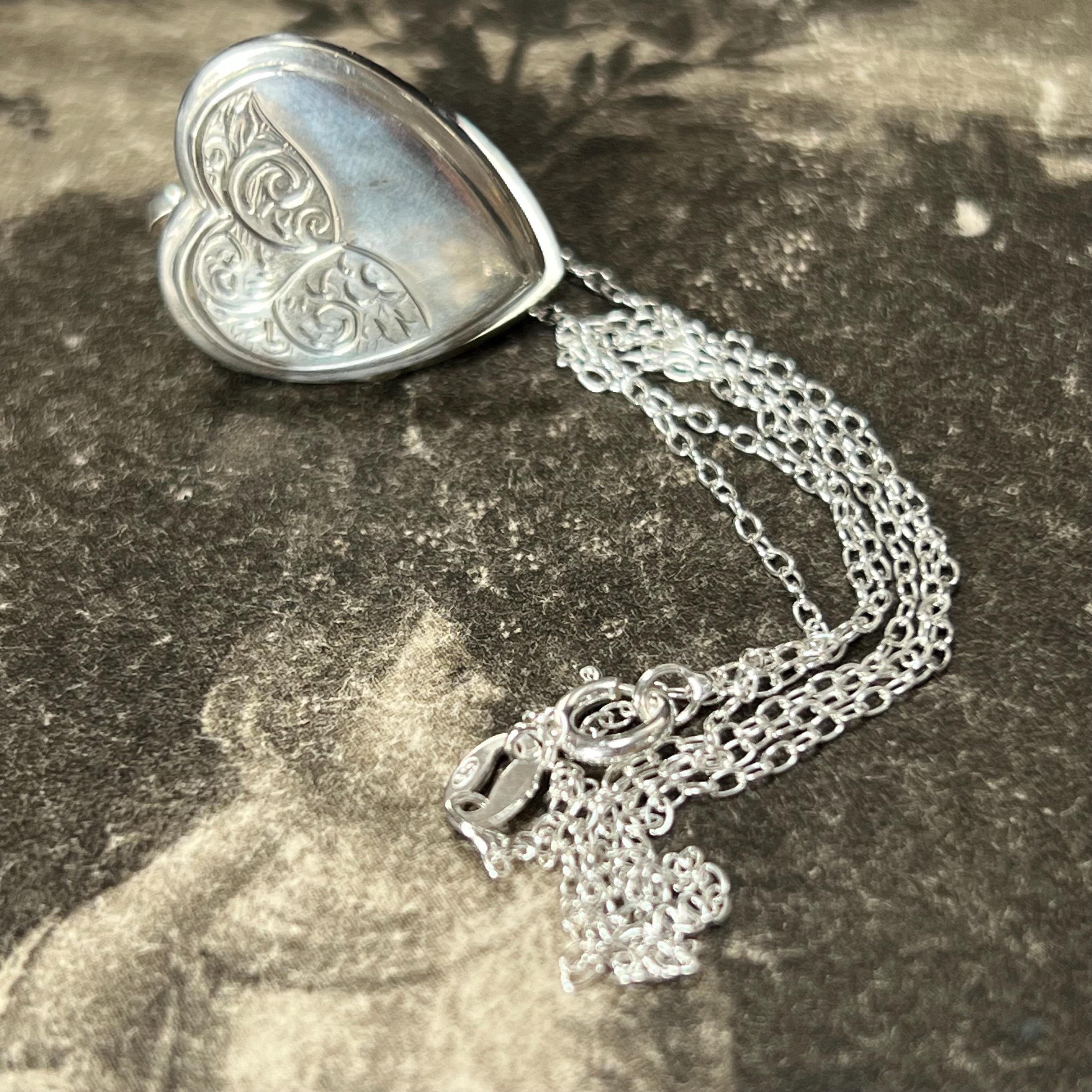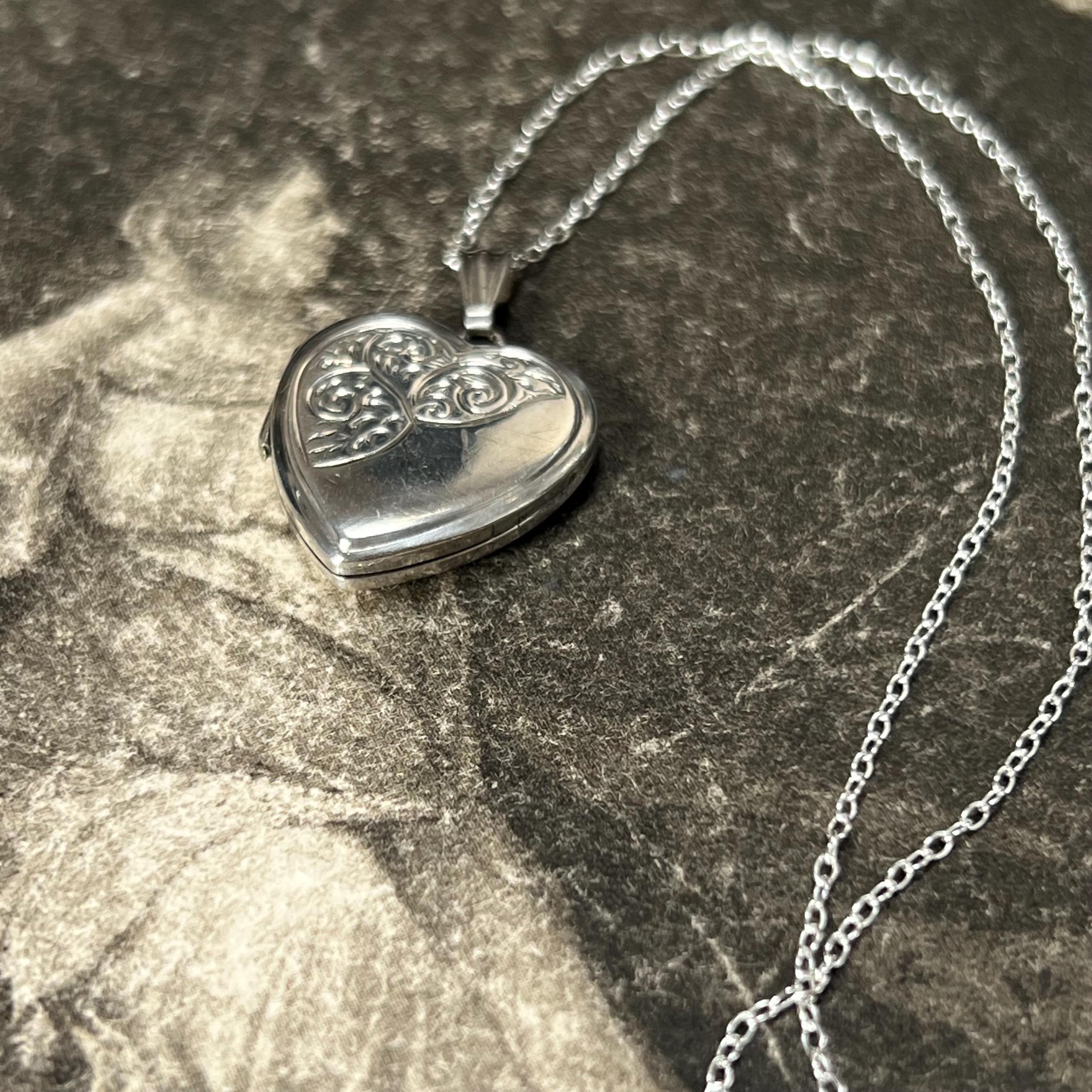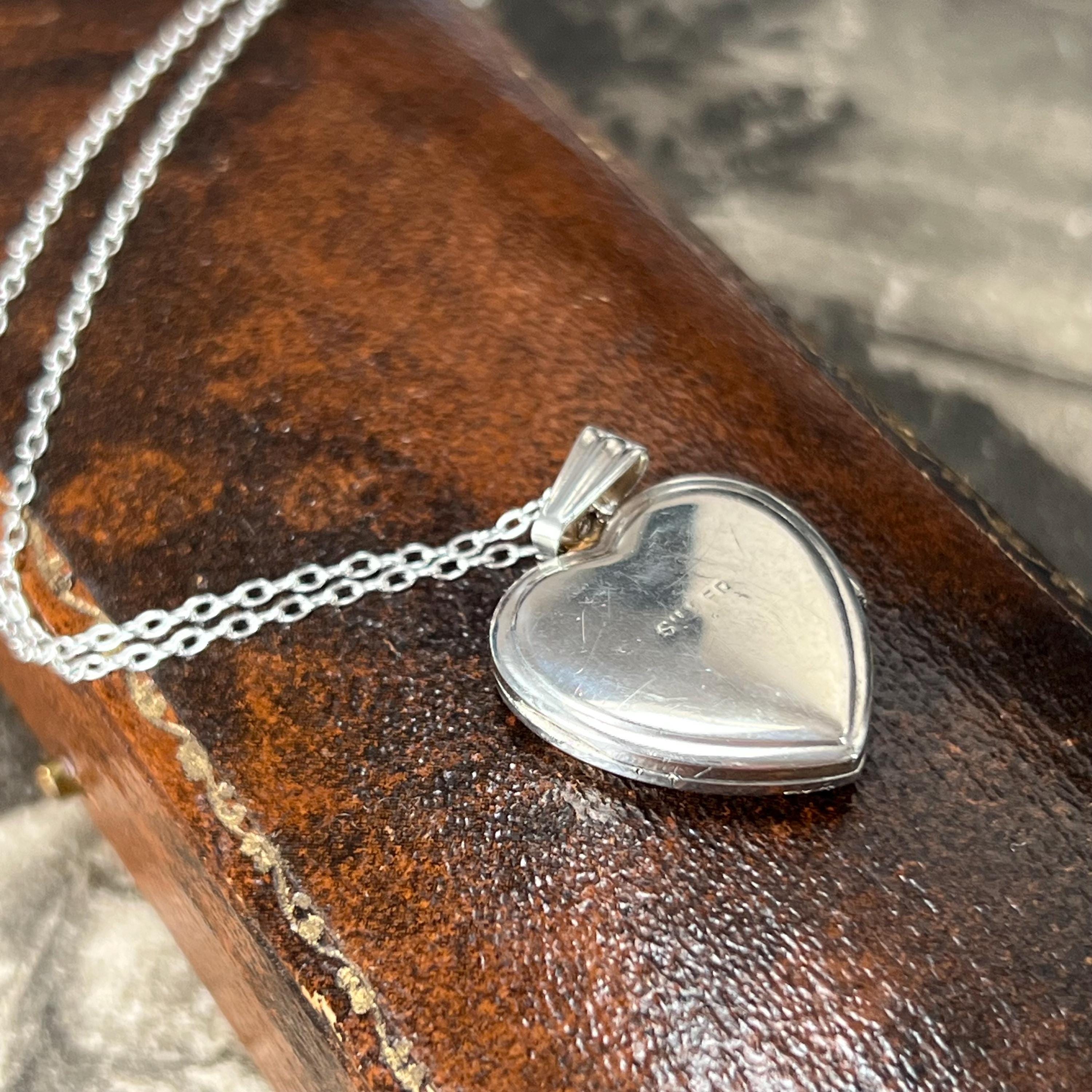 A timeless and romantic vintage silver heart locket, featuring delicate engraved detail across half of the front for that classic, softly decorative look.