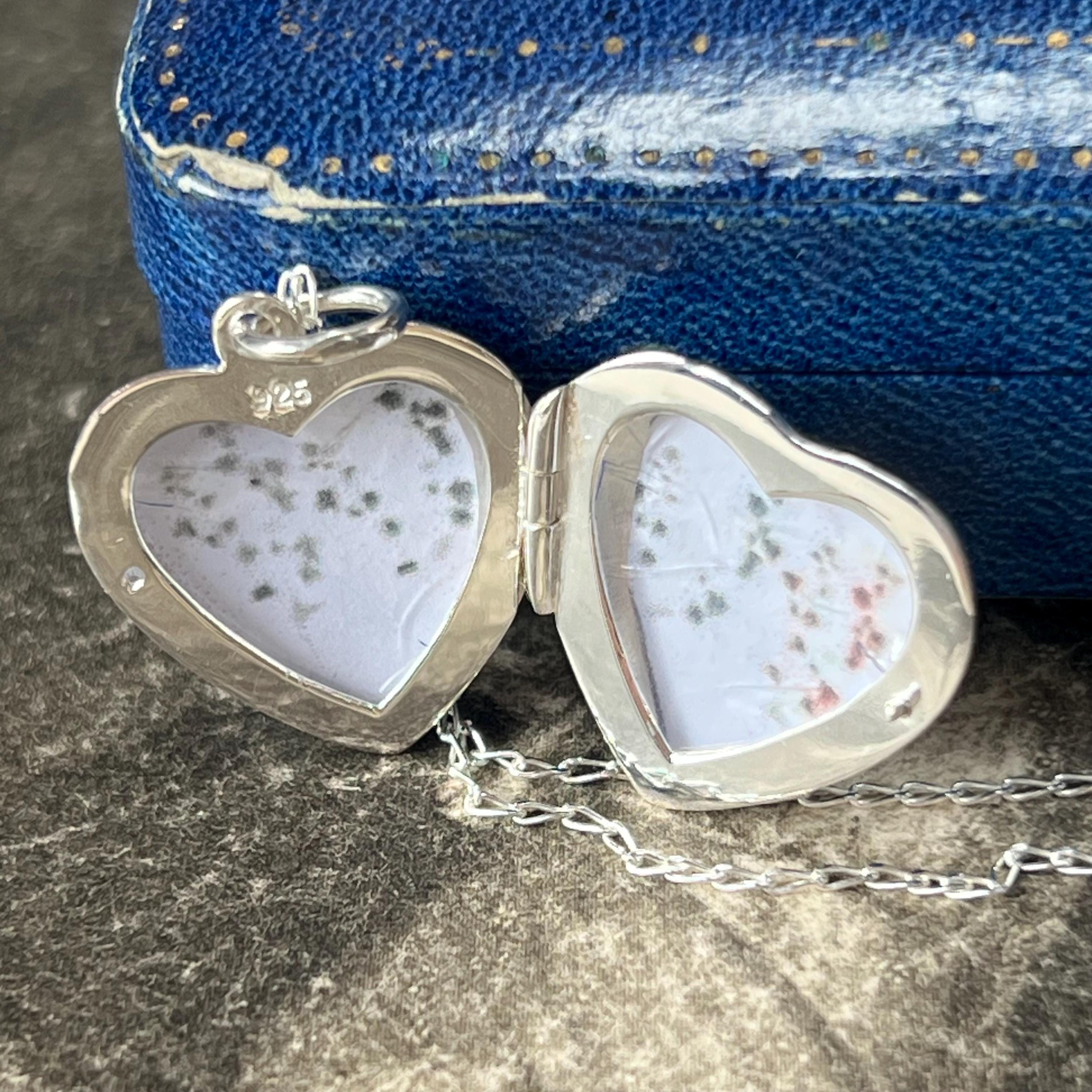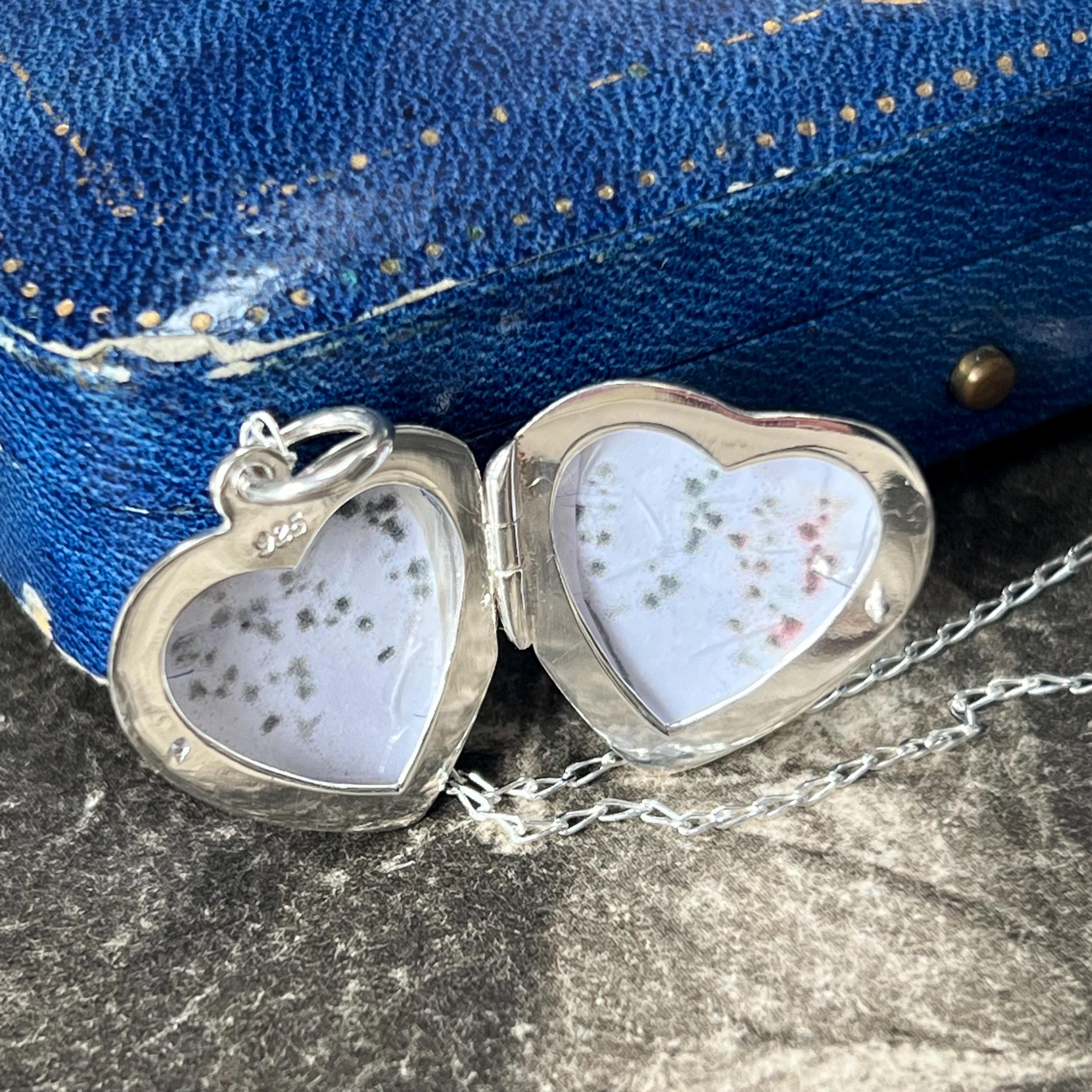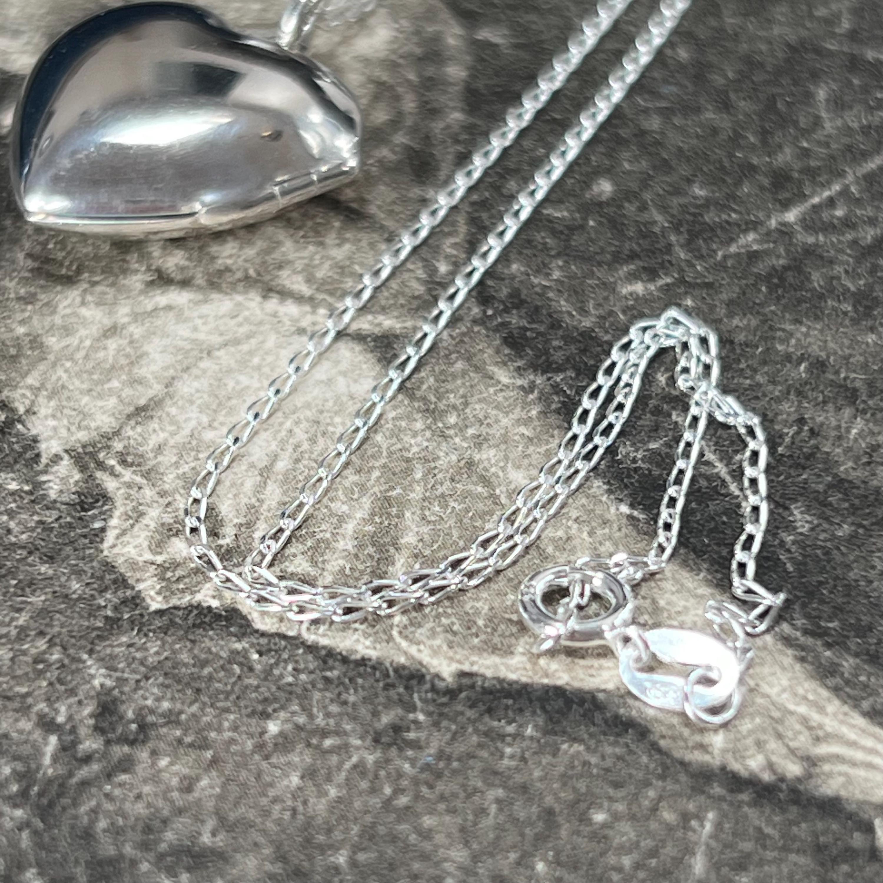 The locket is paired with a sterling silver 18 inch (45 cm) chain, crafted from 100% recycled eco-freindly 925 silver in a 1 mm diamond cut curb style, adding a subtle sparkle to the piece.