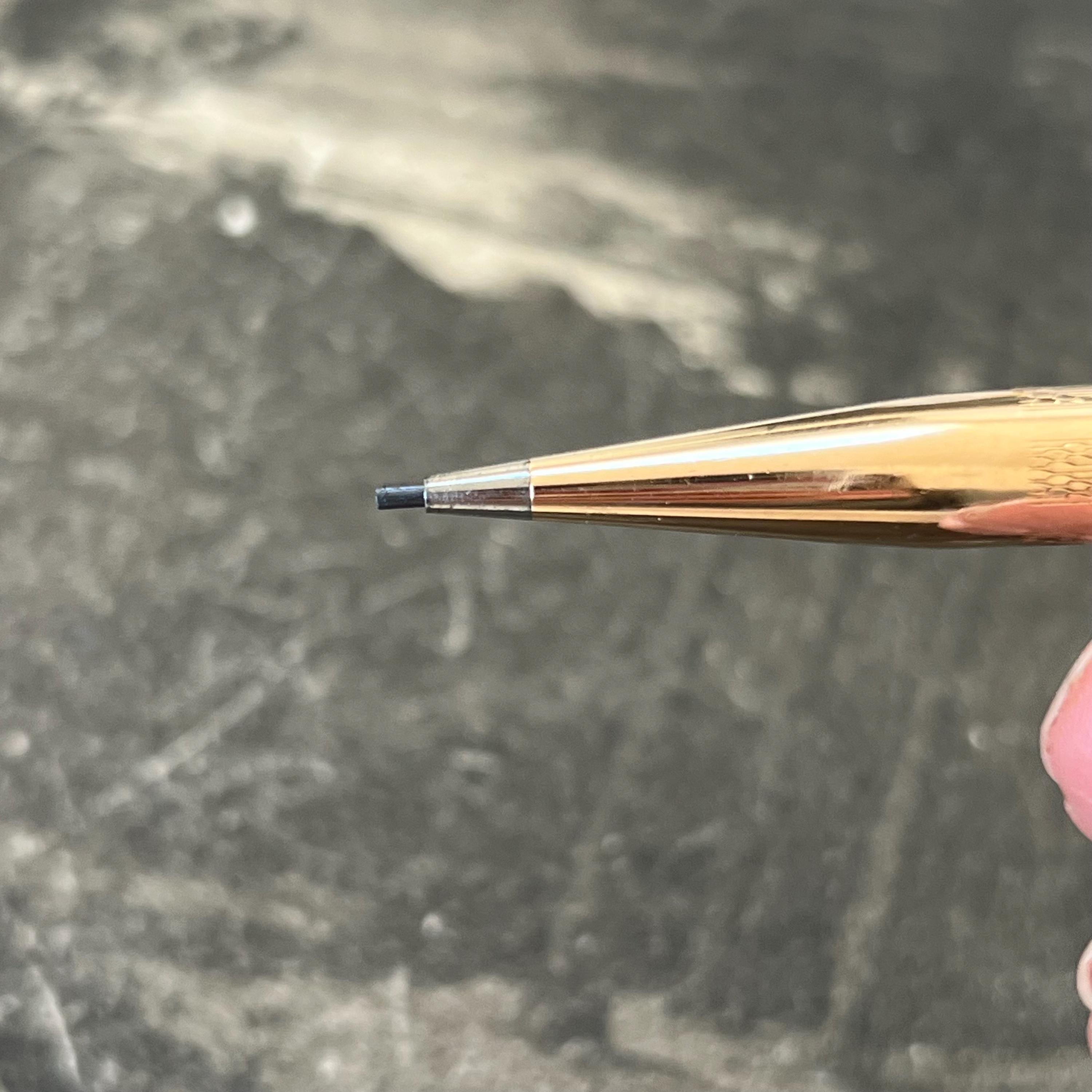 The pencil operates with a classic mechanism — twist to extend the lead. To retract, gently push the lead back while turning the top. A traditional and satisfying action typical of vintage mechanical pencils.