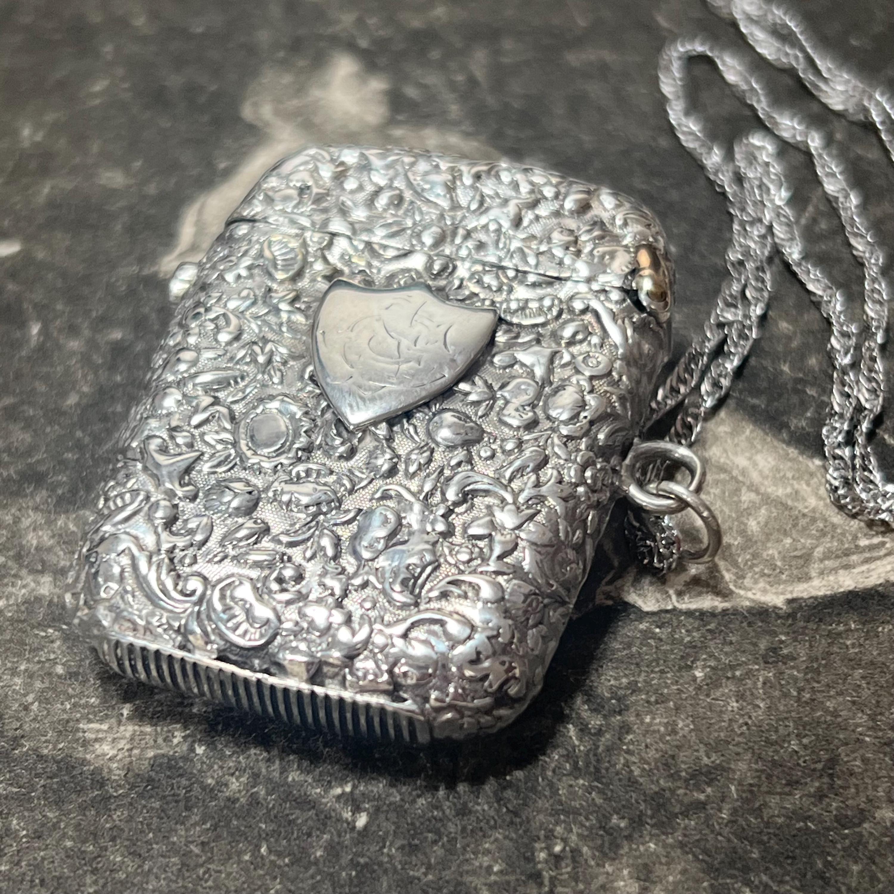 A truly one-of-a-kind antique piece, ideal for collectors of Victorian silver, vesta cases, or anyone drawn to unusual and highly detailed historic jewellery.