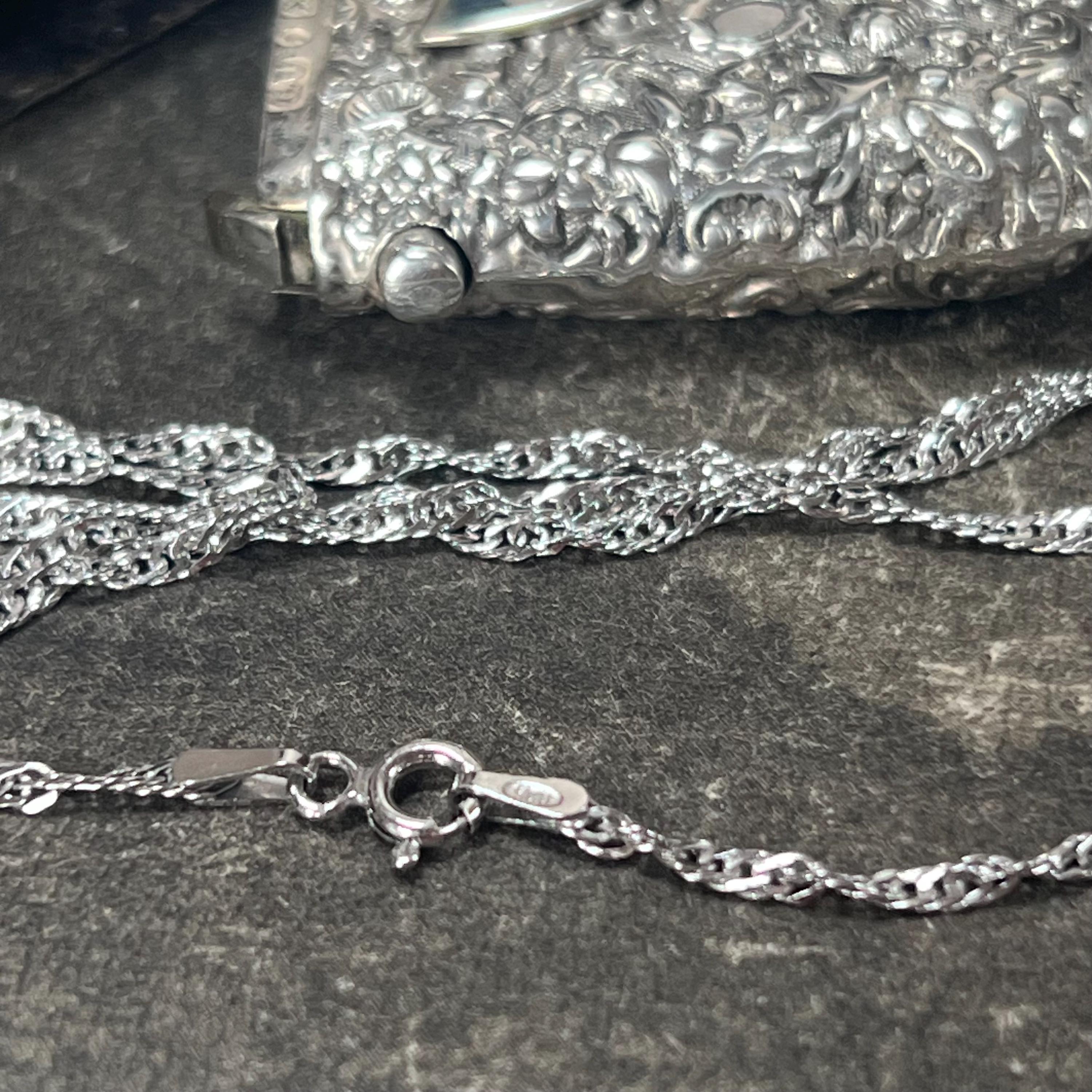 • Chain: 24” / 60 cm vintage silver twist rope (stamped 925)