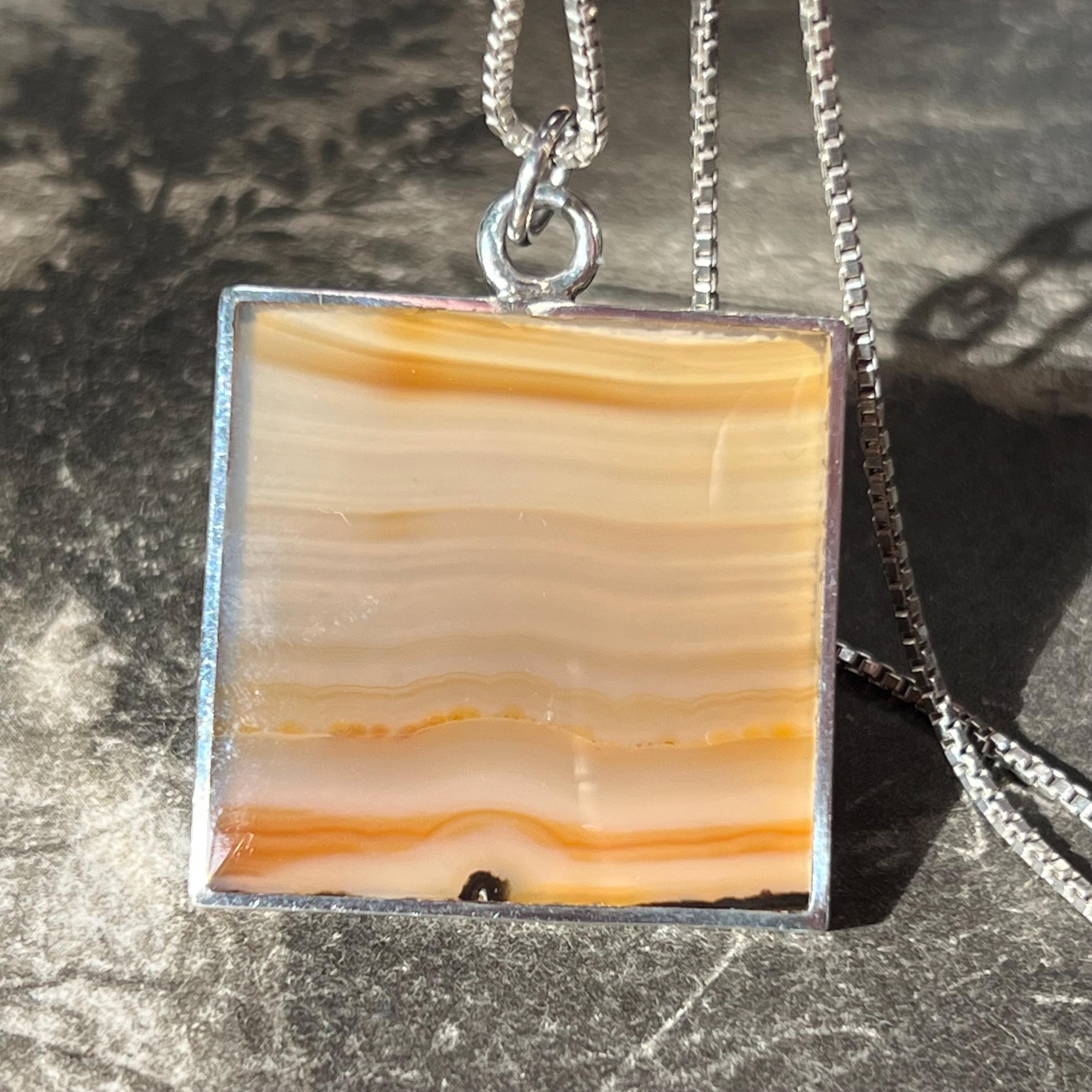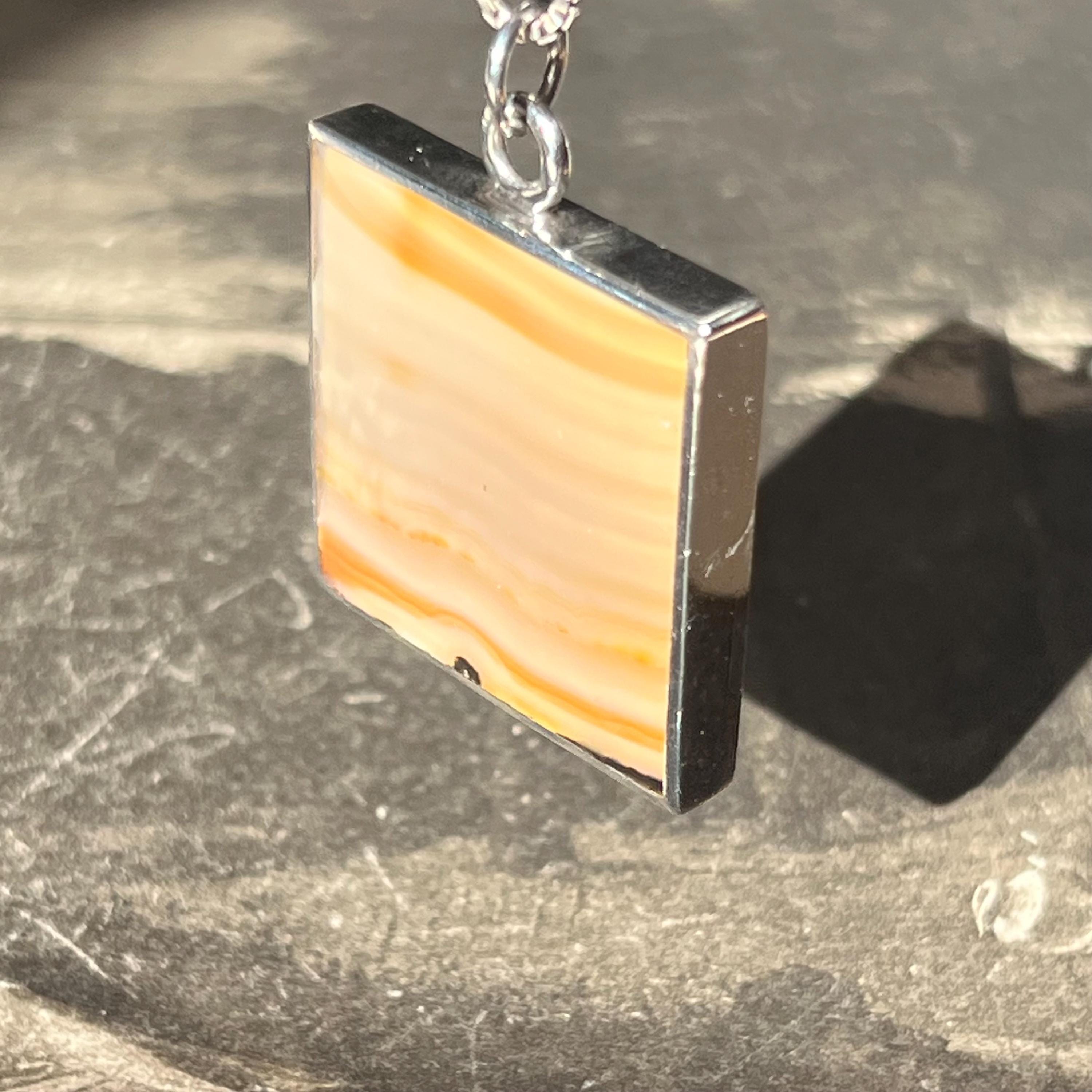 • Stone: Double-sided butterscotch banded agate