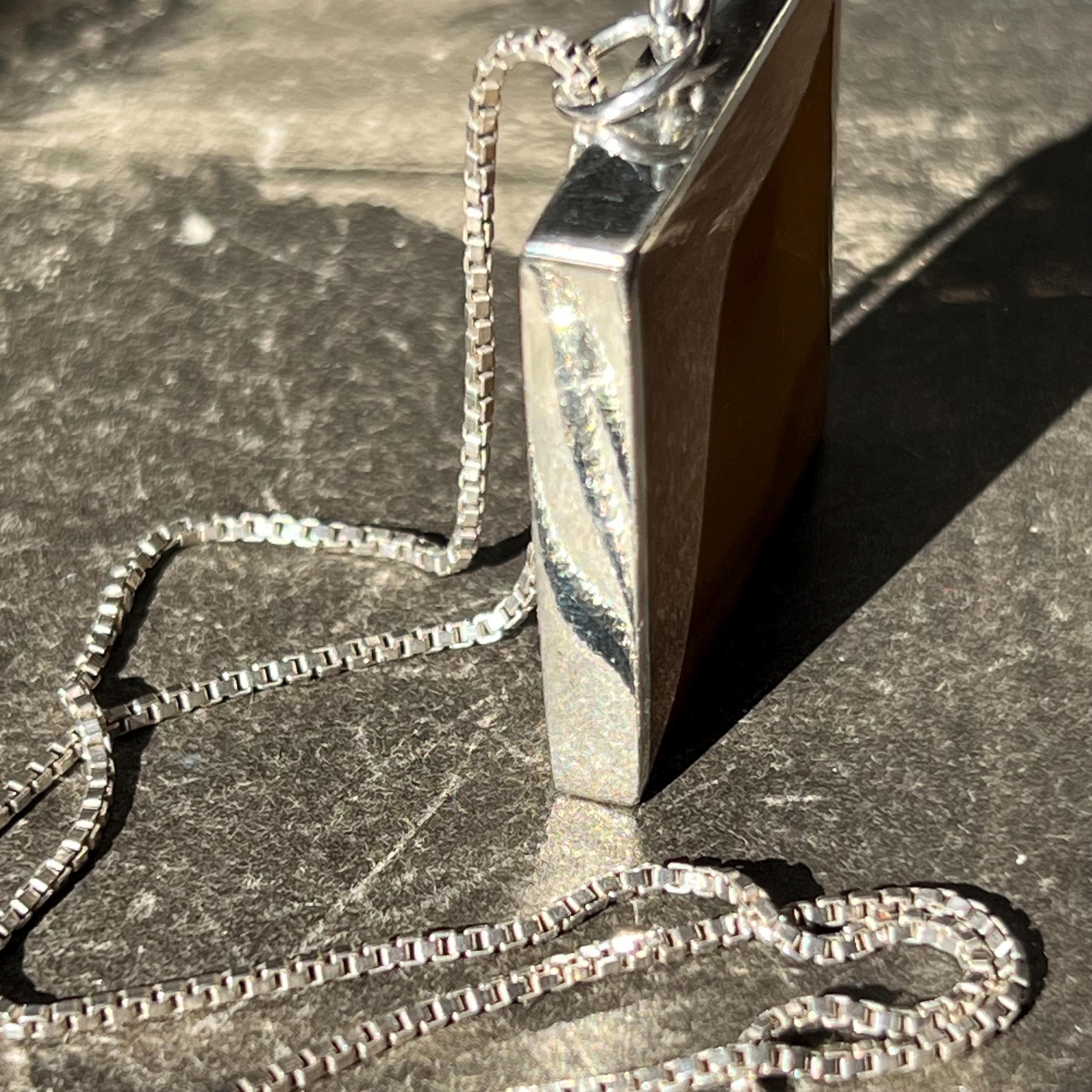 • Chain: 22” sterling silver box chain (stamped 925)