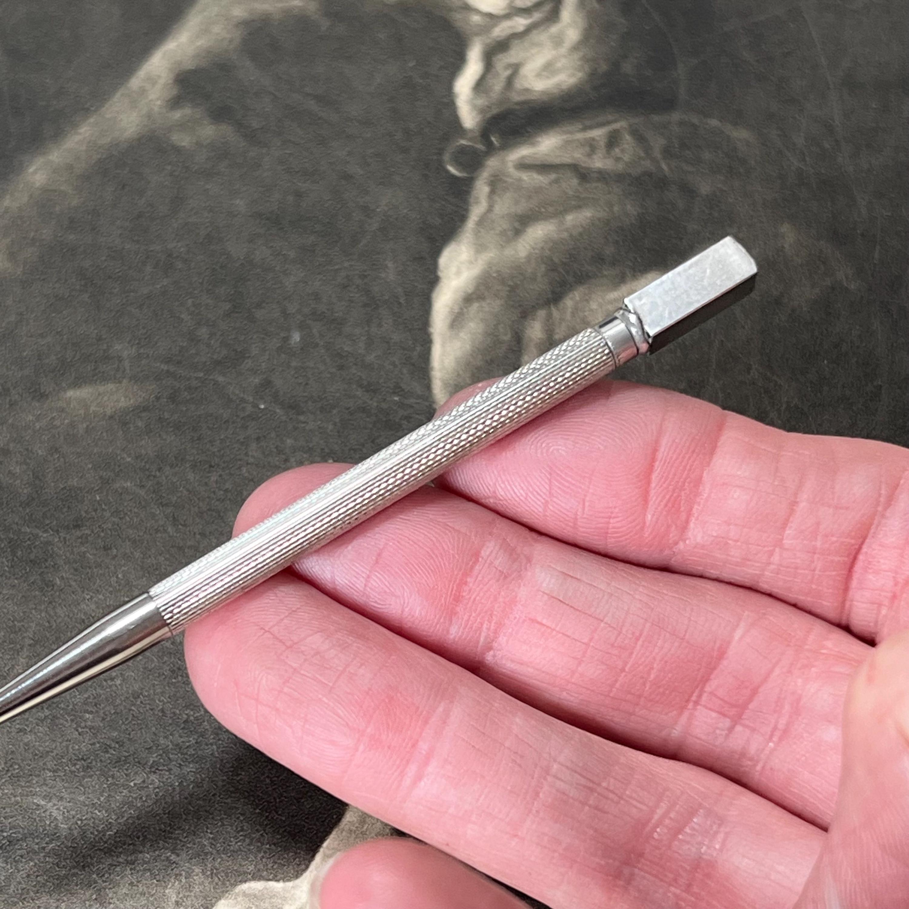 Featuring decorative raised detailing to the body and a distinctive squared top, this pencil is both functional and highly collectible.