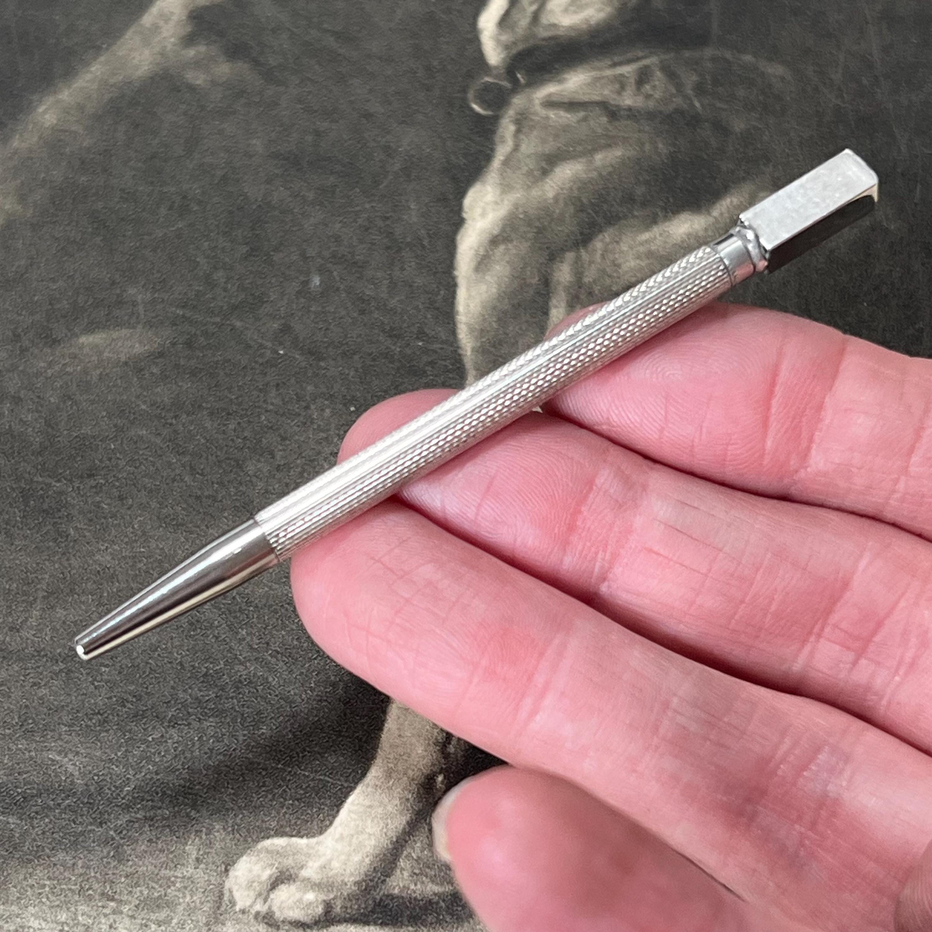 Vintage silver bridge pencil by Ari Norman, stamped “A N” to the side, indicating the maker. These charming miniature pencils were traditionally part of bridge card game sets, often issued in sets of four—making this a perfect replacement piece or addition for collectors.