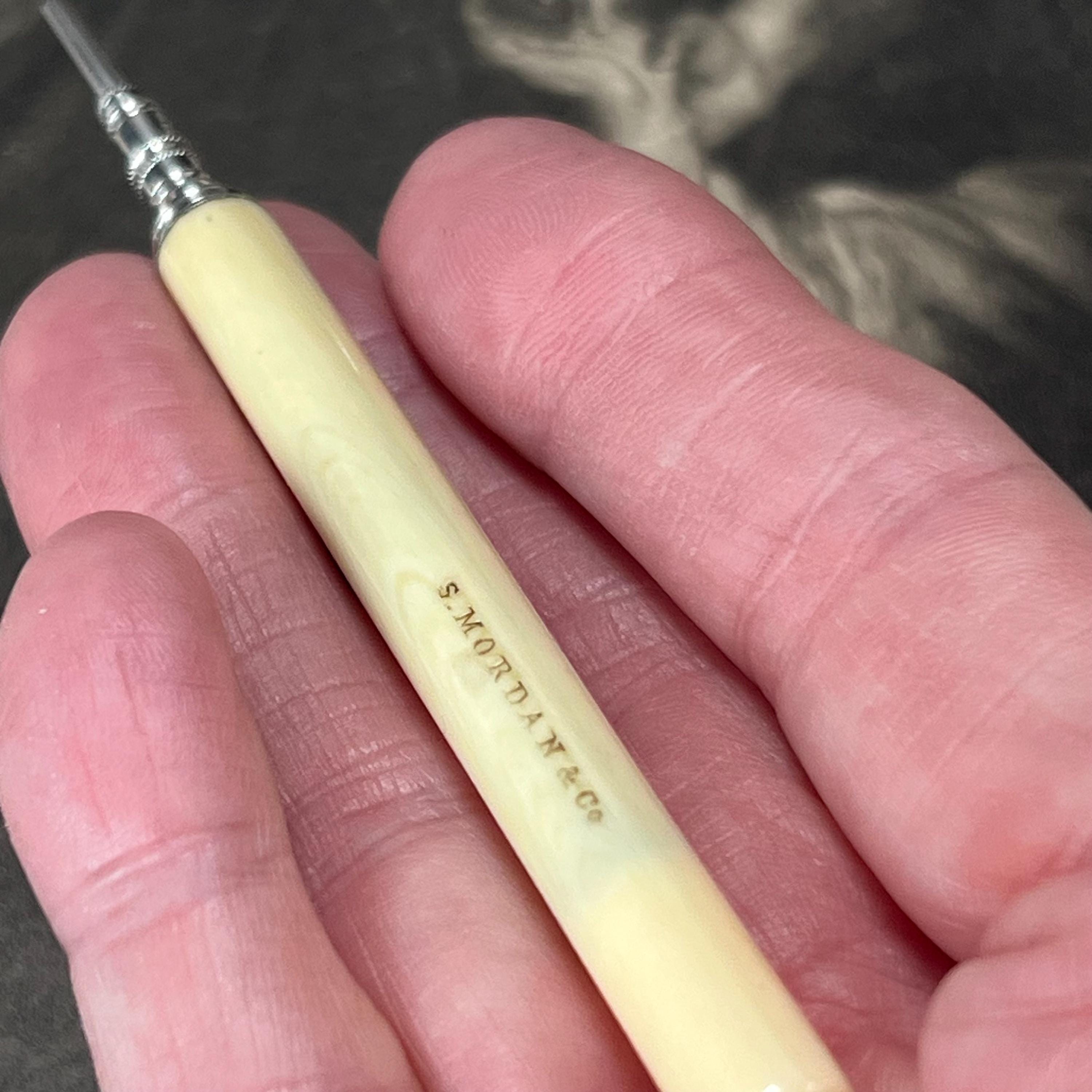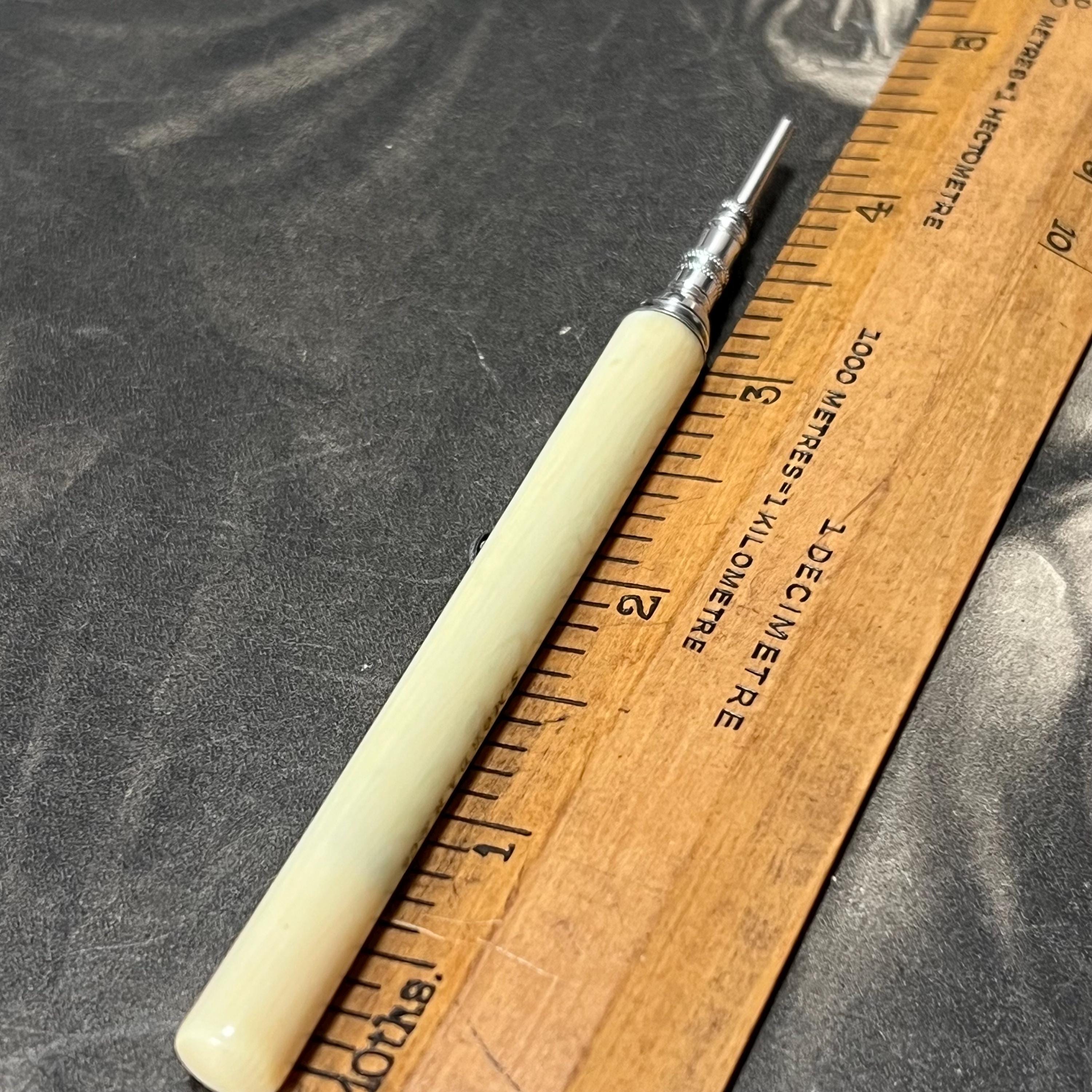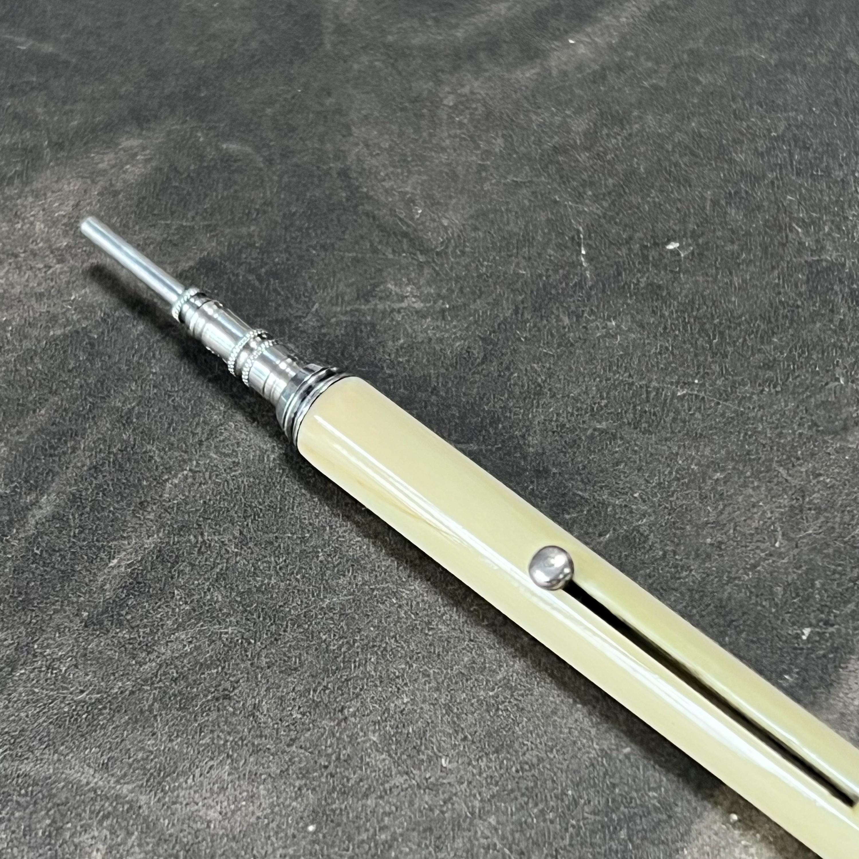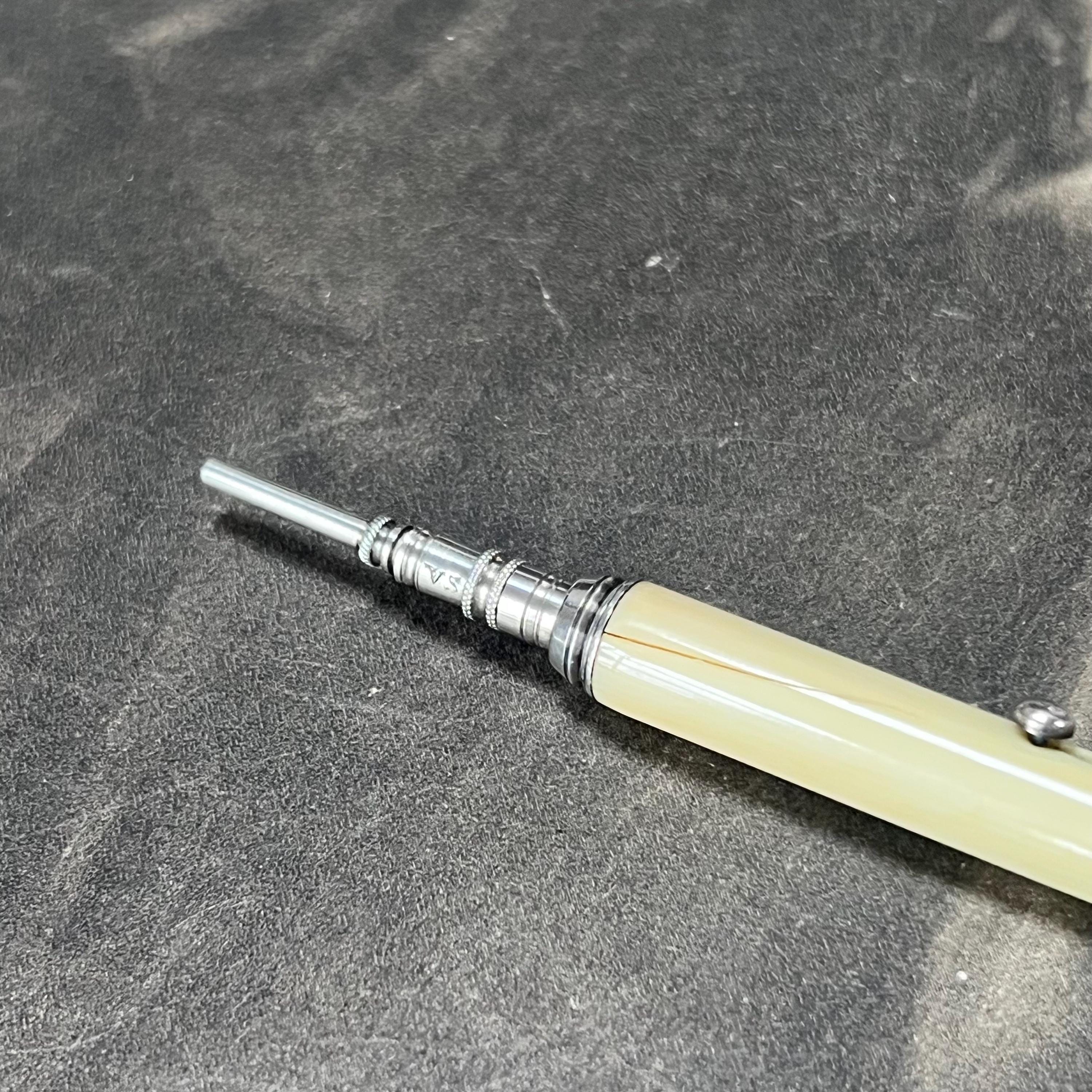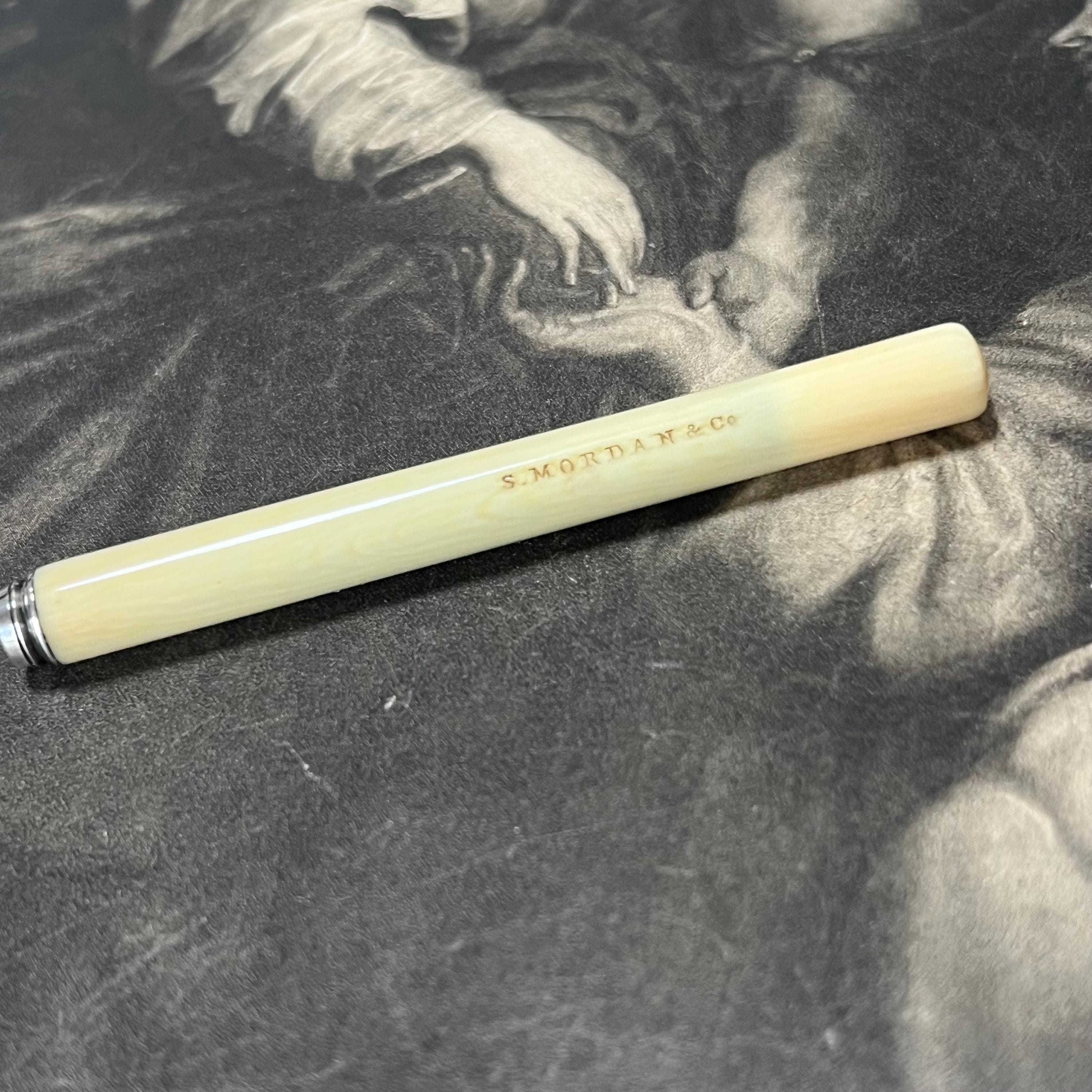 Antique Victorian propelling pencil by Sampson Mordan & Co., bone handle and classic button slide-action mechanism.