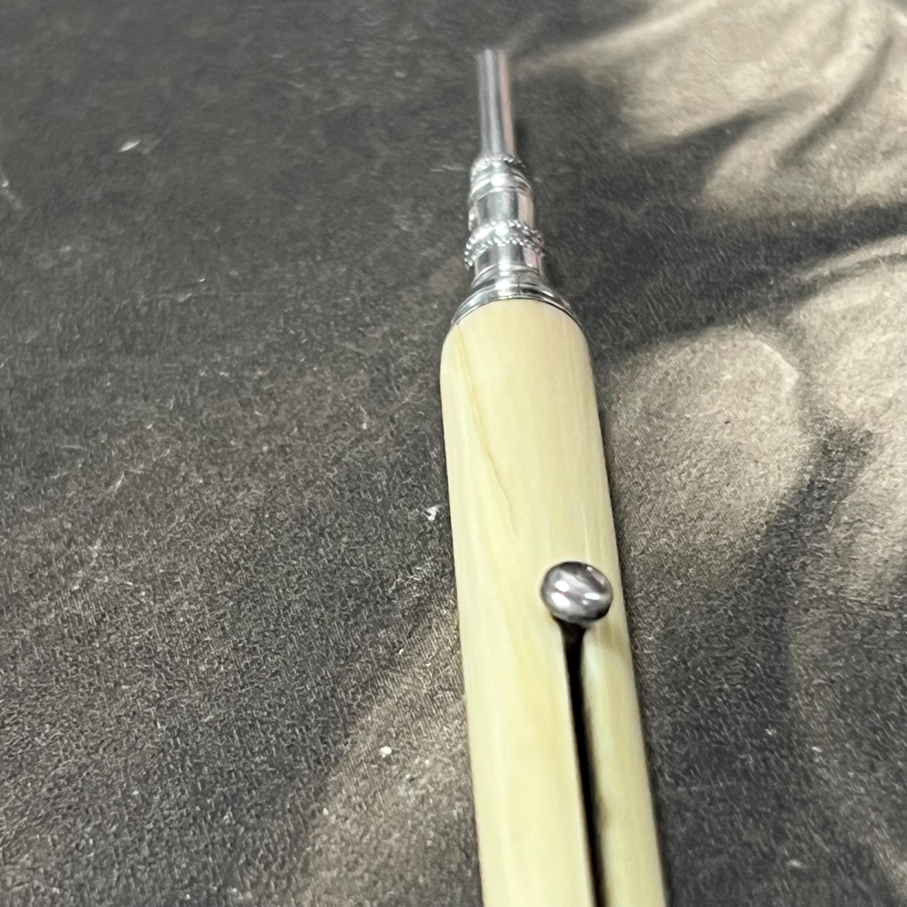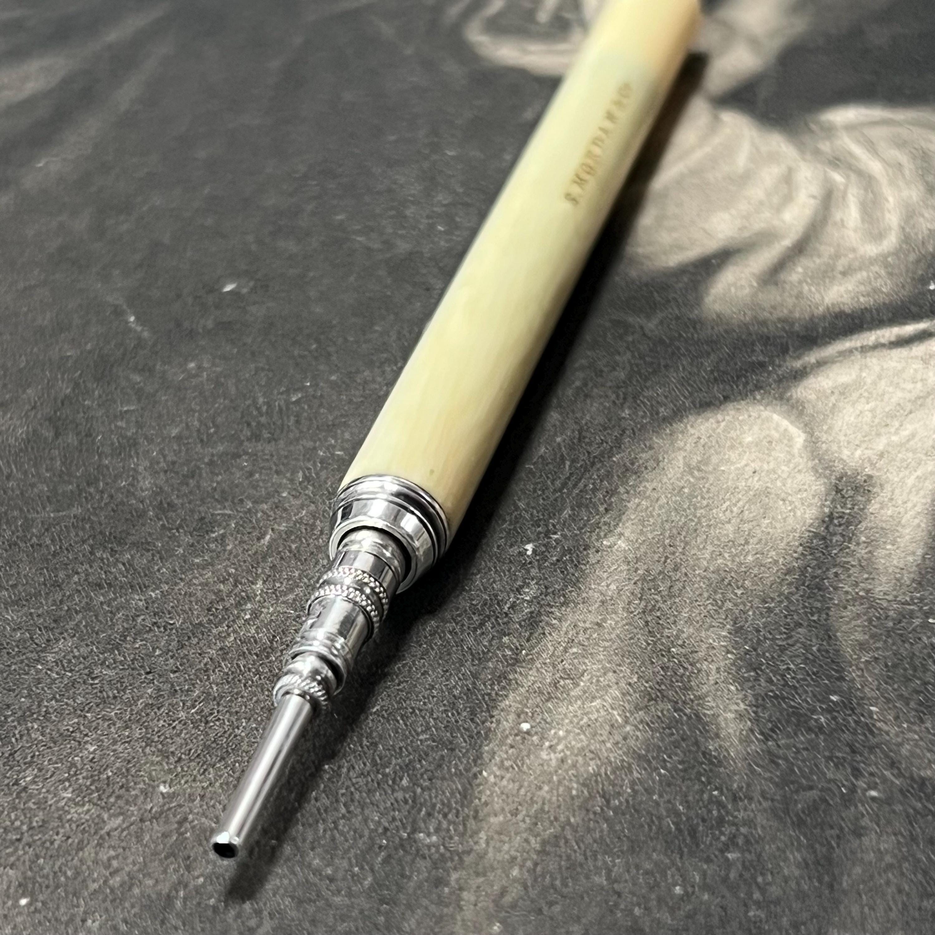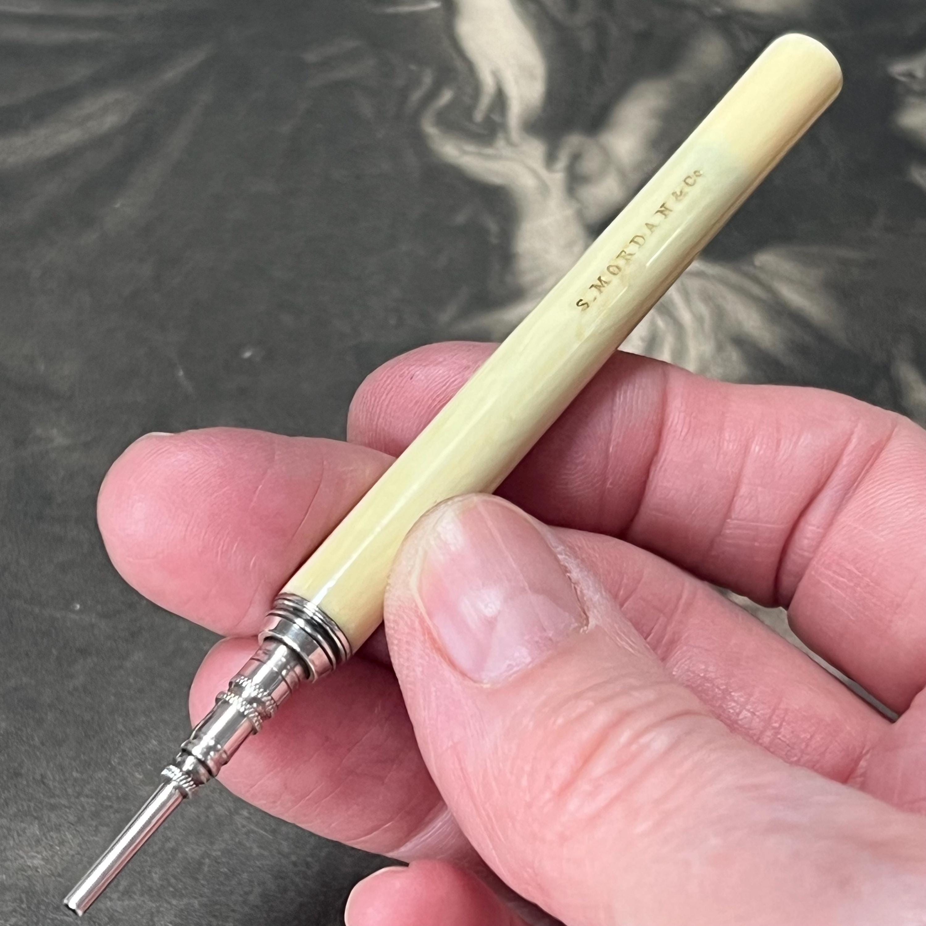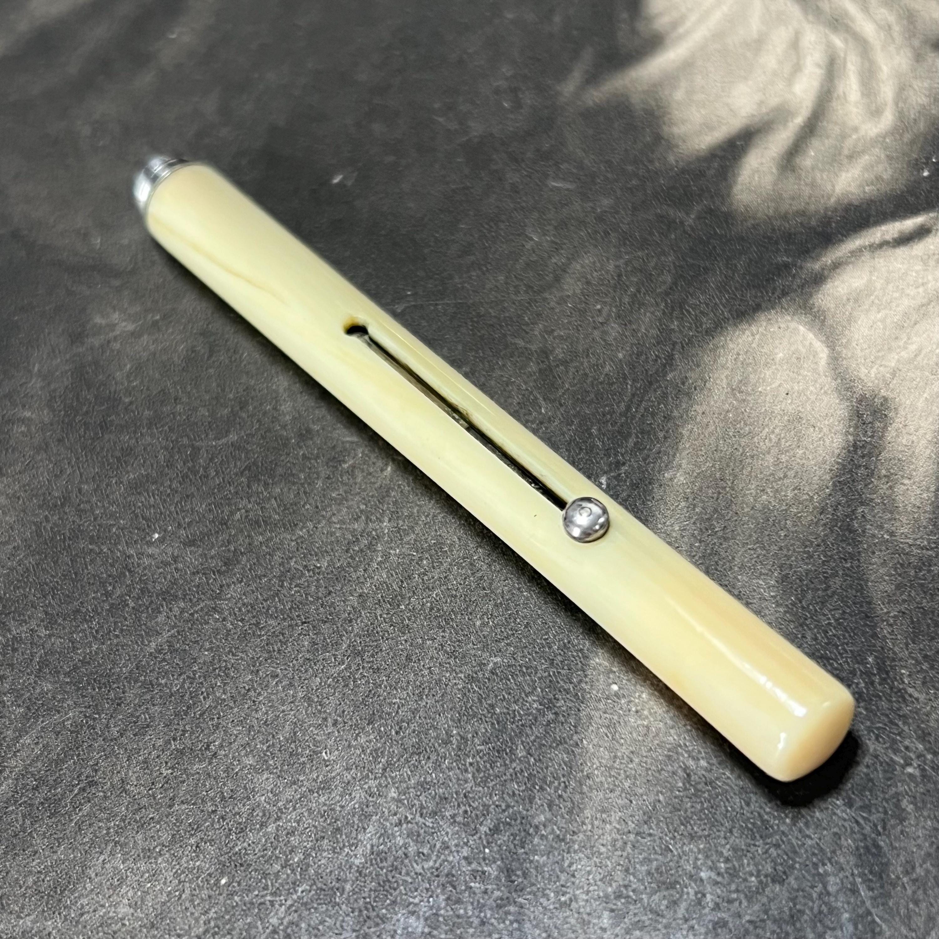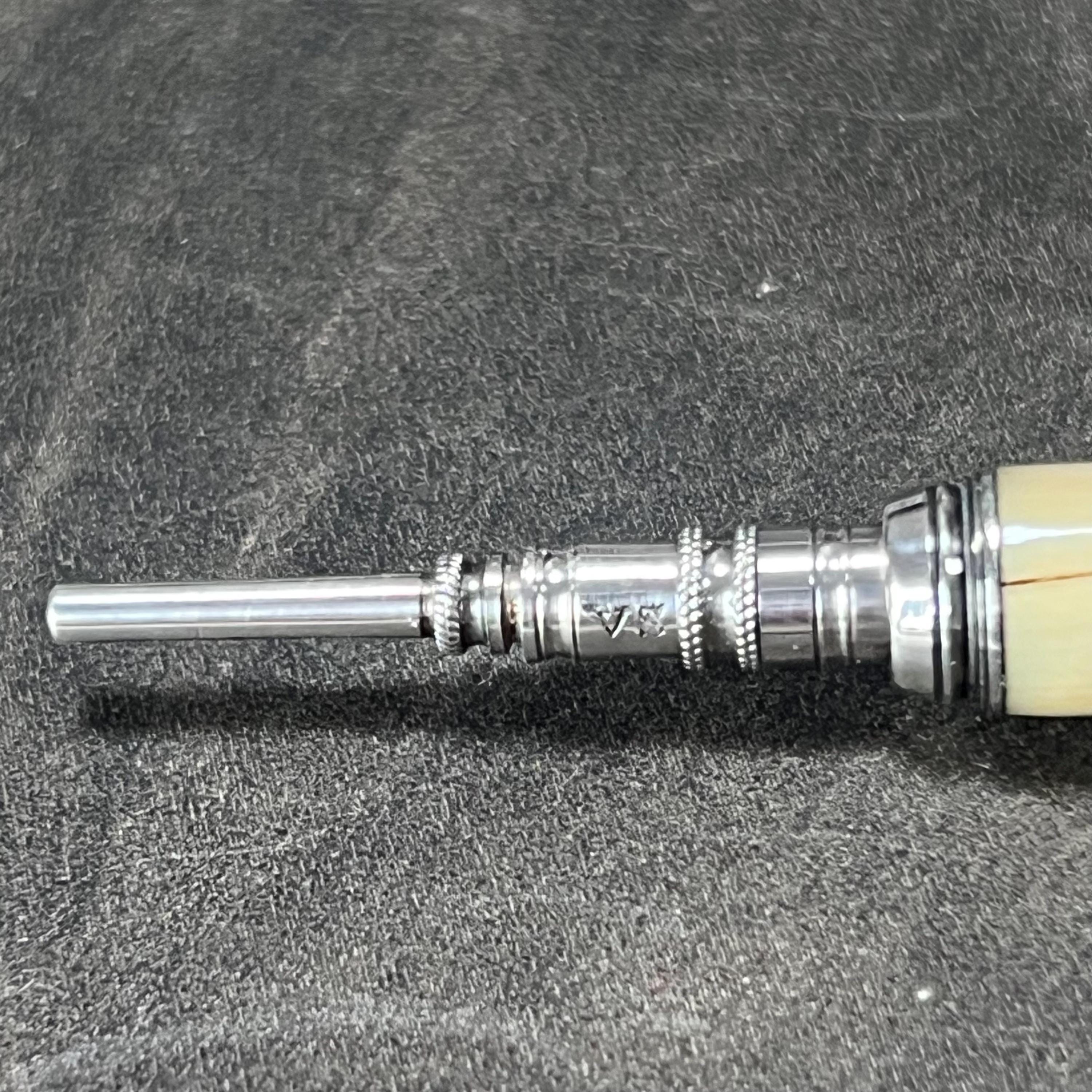 Antique Victorian propelling pencil by Sampson Mordan & Co., bone handle and classic button slide-action mechanism.