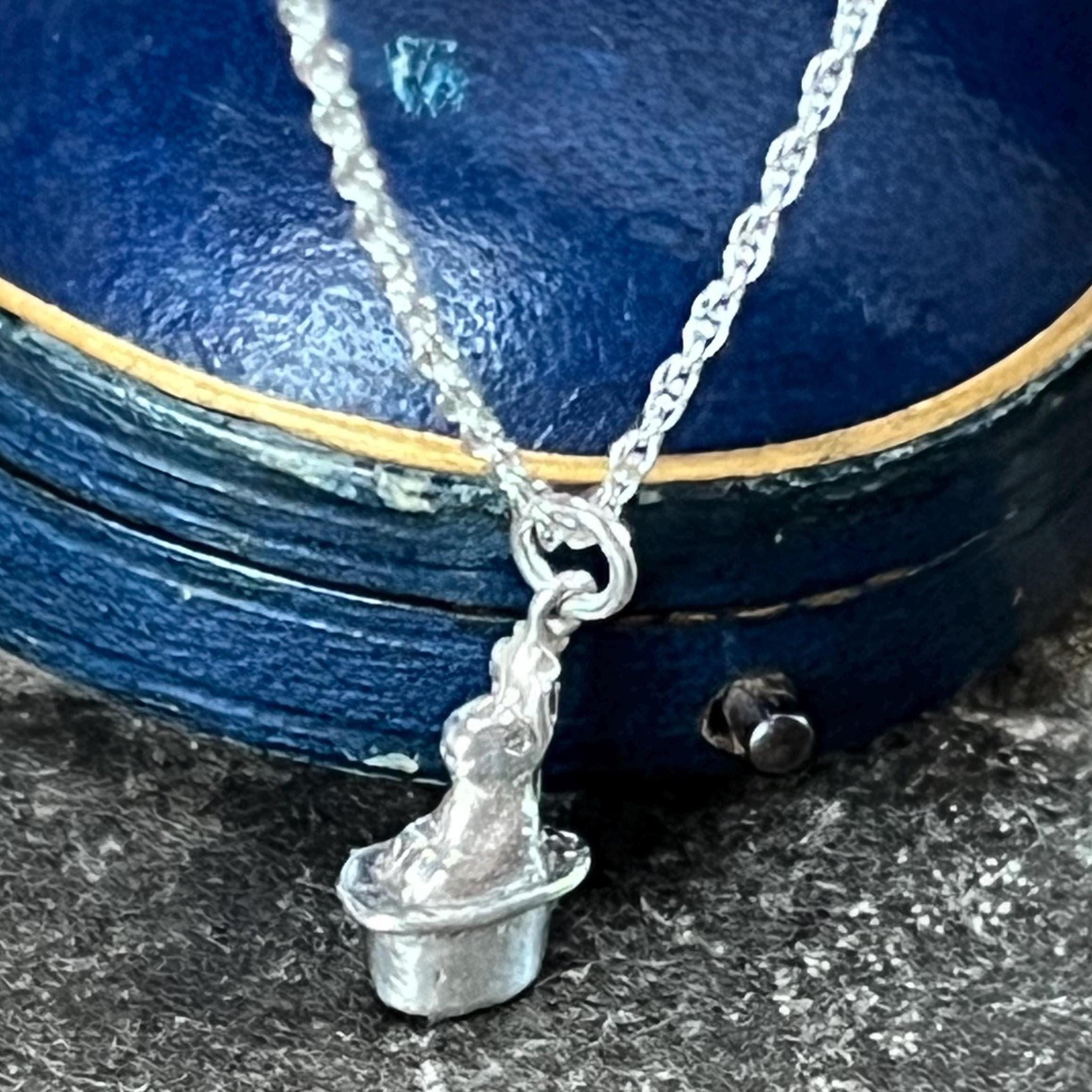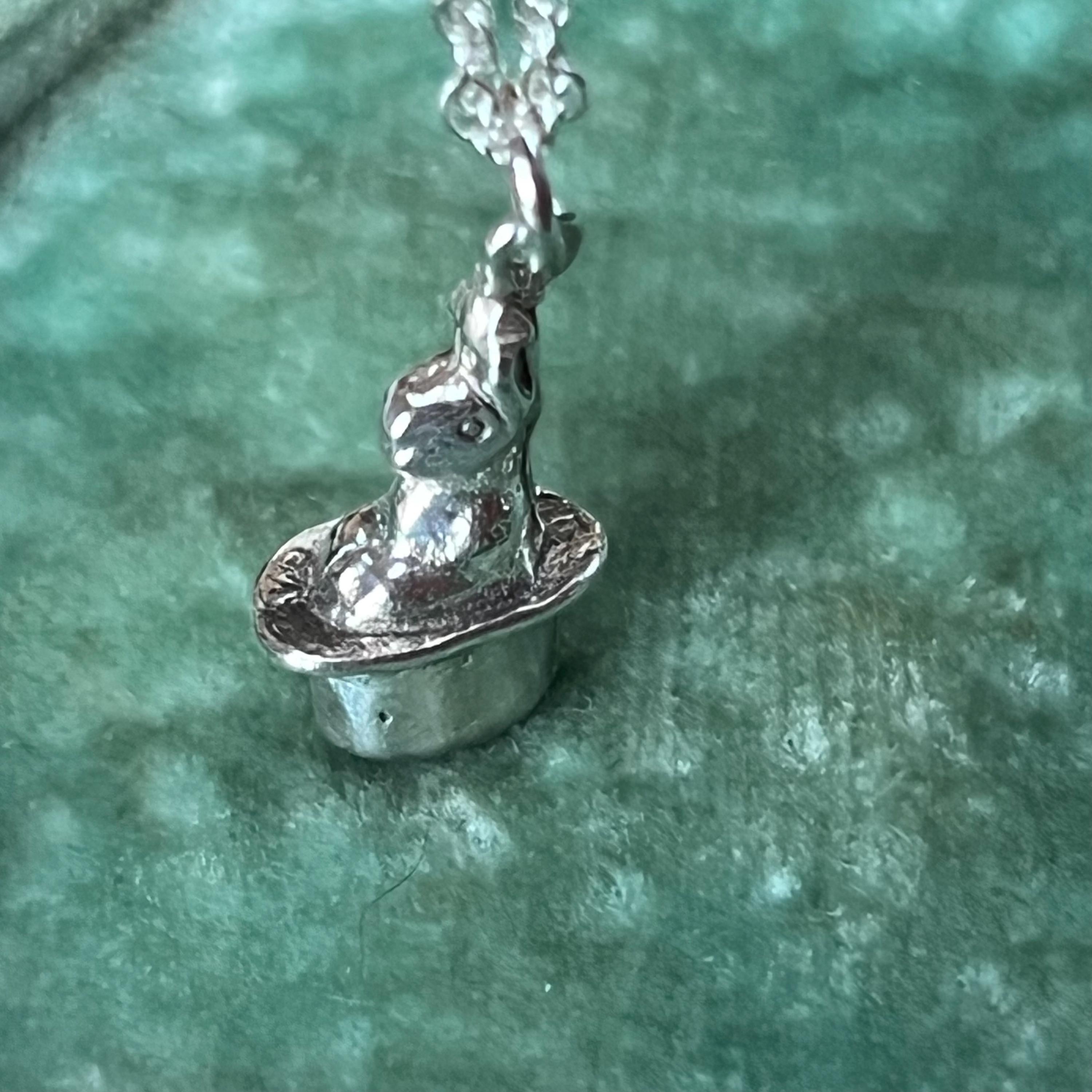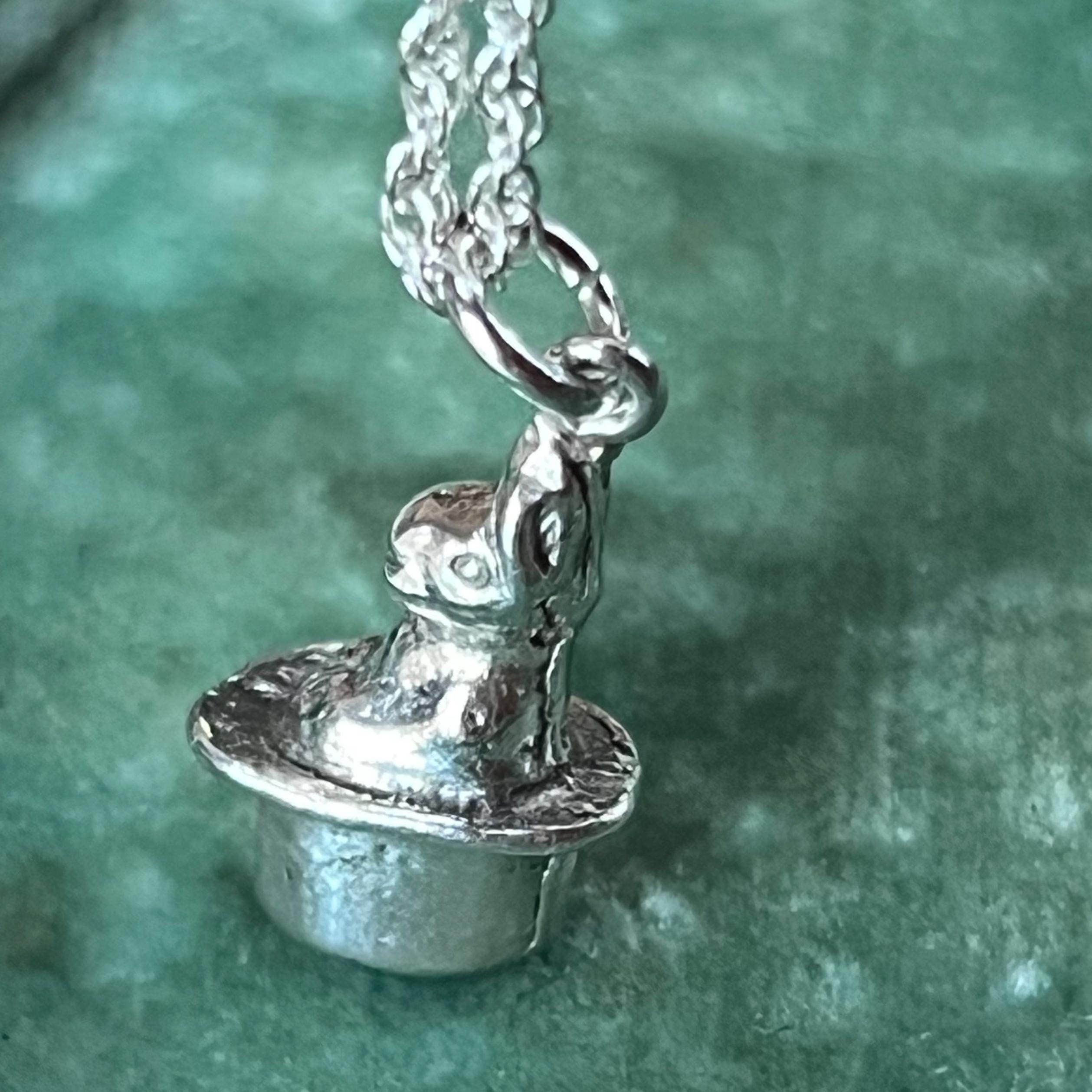 Bring a touch of whimsical charm to your jewellery collection with this vintage silver rabbit in a hat charm pendant, complete with an eco-friendly 18" (45 cm) recycled 925 sterling silver rope chain. This delightful lucky rabbit design makes a meaningful and memorable gift for vintage lovers, charm collectors, or anyone who enjoys quirky, magical motifs. Note antique boxes are not included, this will come in eco-friendly packaging.