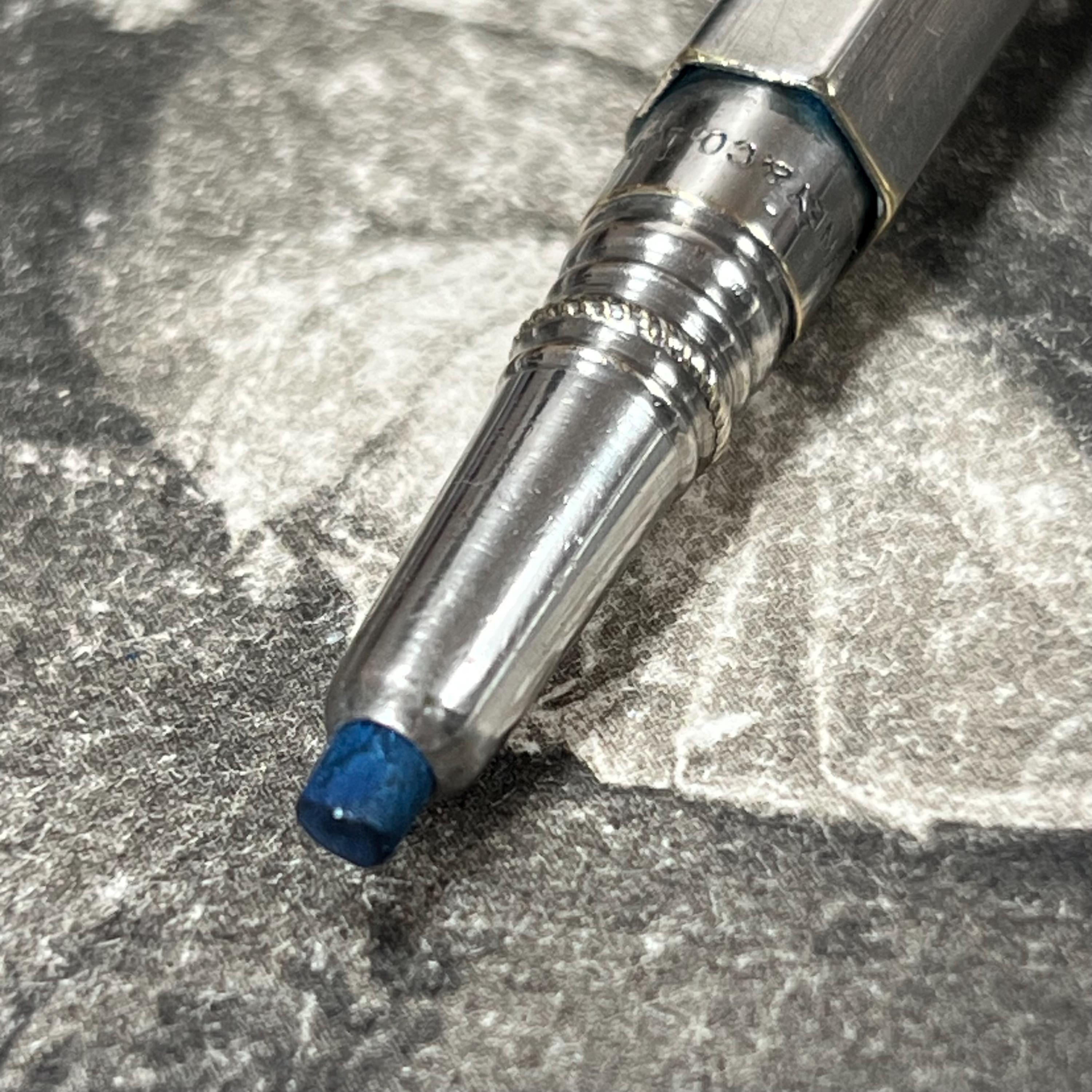 This substantial hexagonal-bodied pencil features a chunky design and uses a thicker blue lead, typical of drafting and marking tools of the period. A practical and highly collectible piece for artists, architects, or vintage stationery enthusiasts. Engraved to the side with “S” (crown) “O” and “48–95,” possibly commemorating long service—adding a unique historical touch.