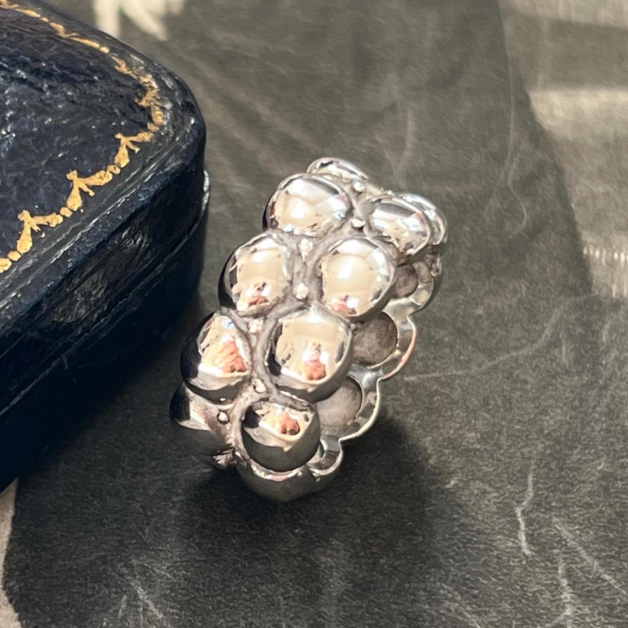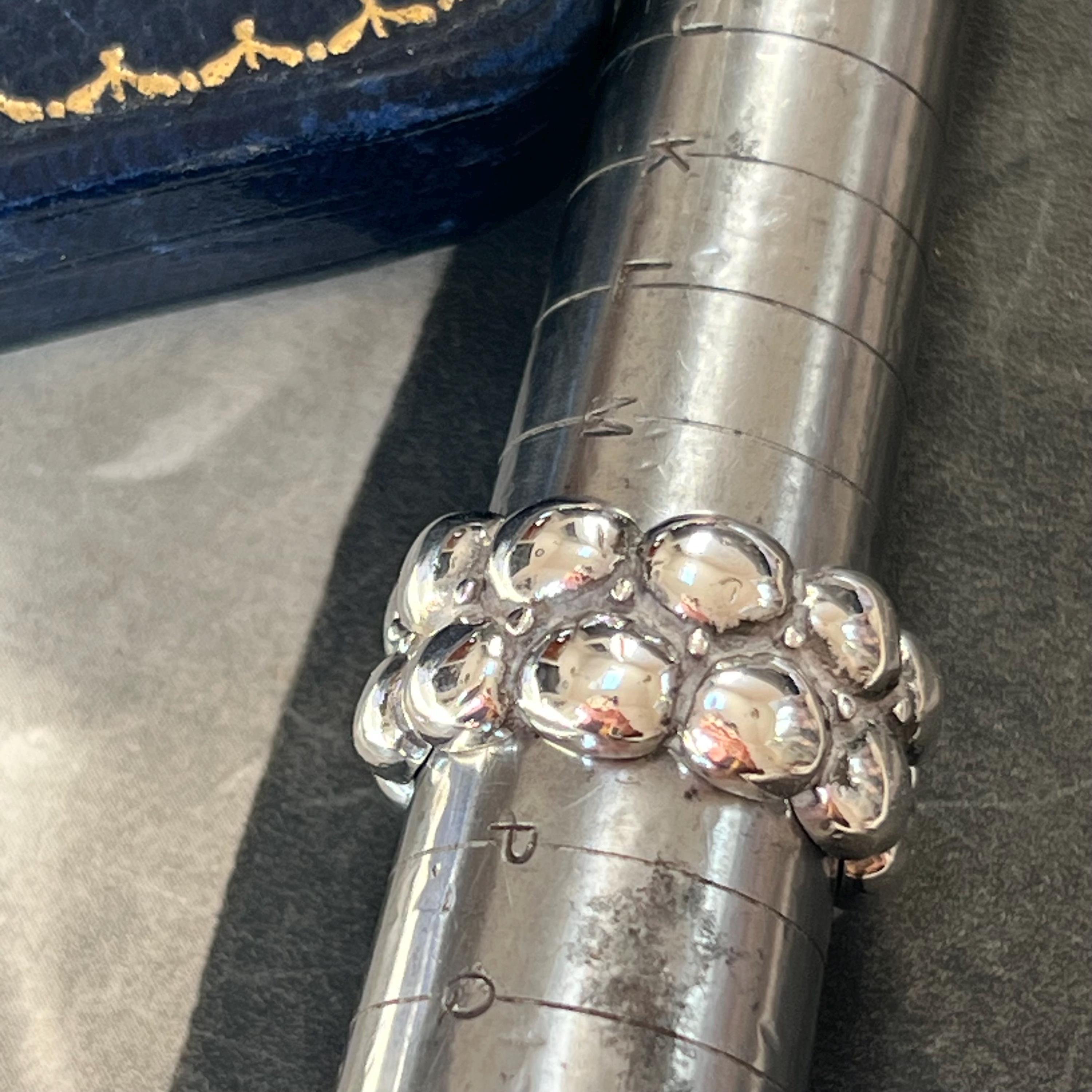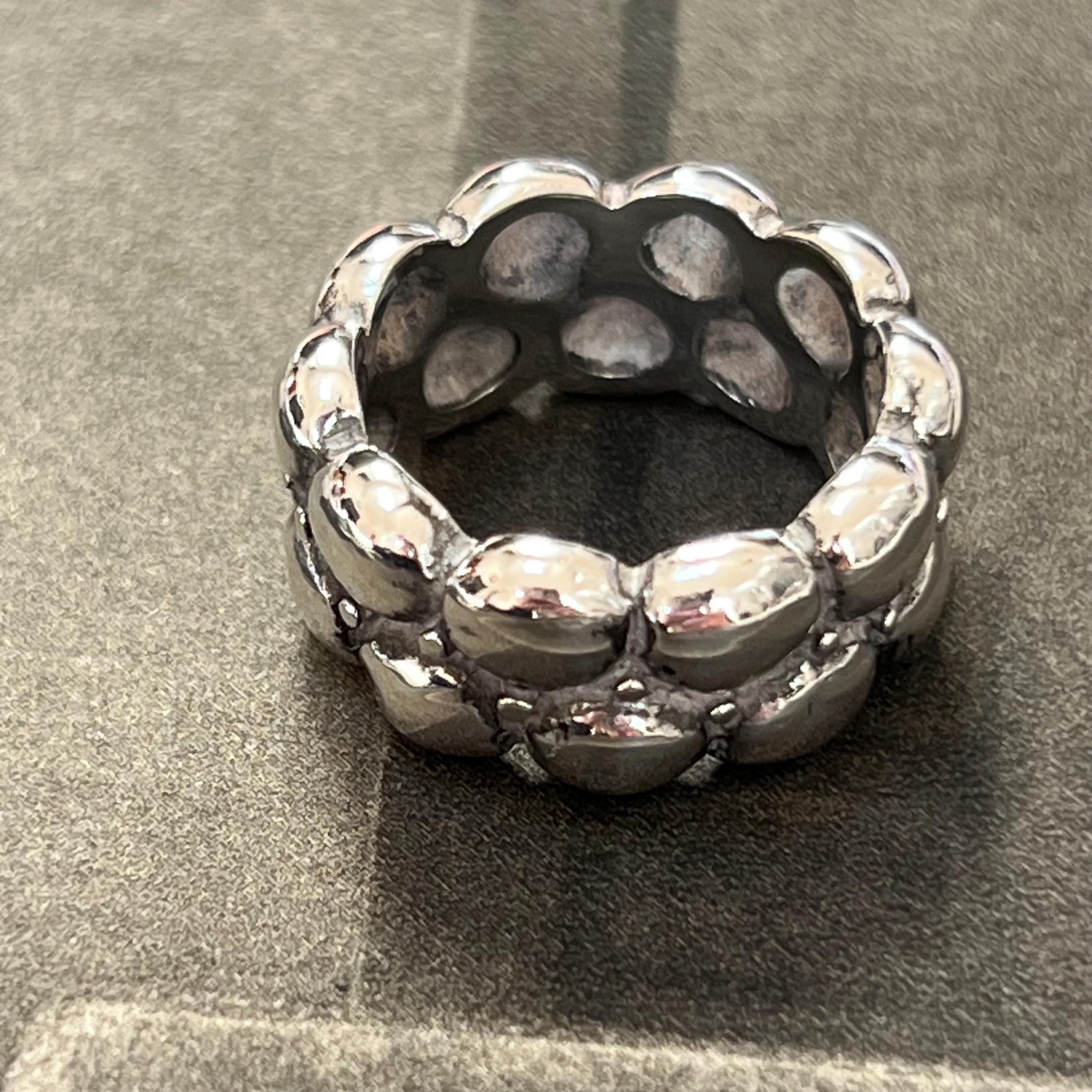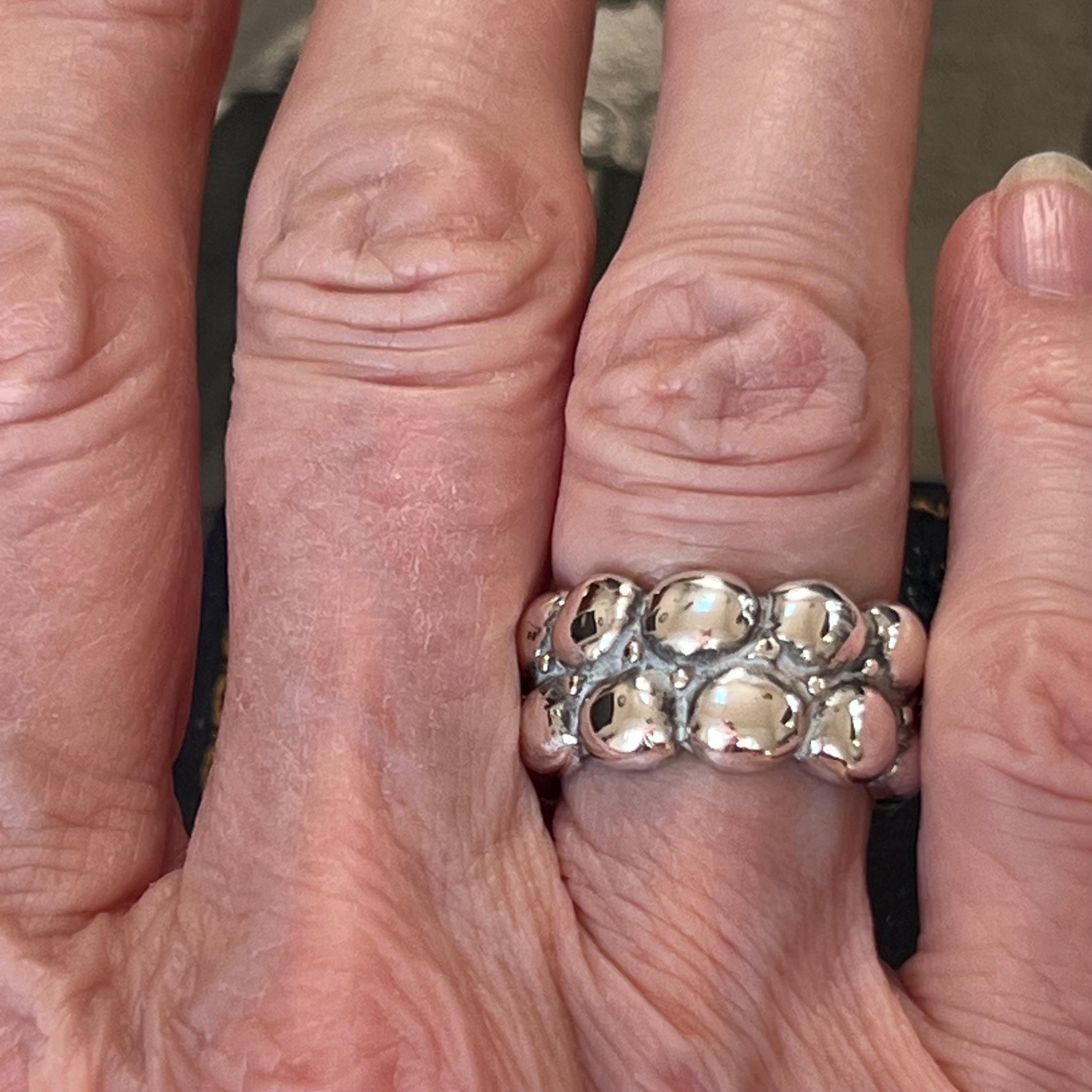 Bold vintage 1990s solid silver ring featuring a striking brutalist bubble design, formed from two rows of rounded dome details across a wide band.